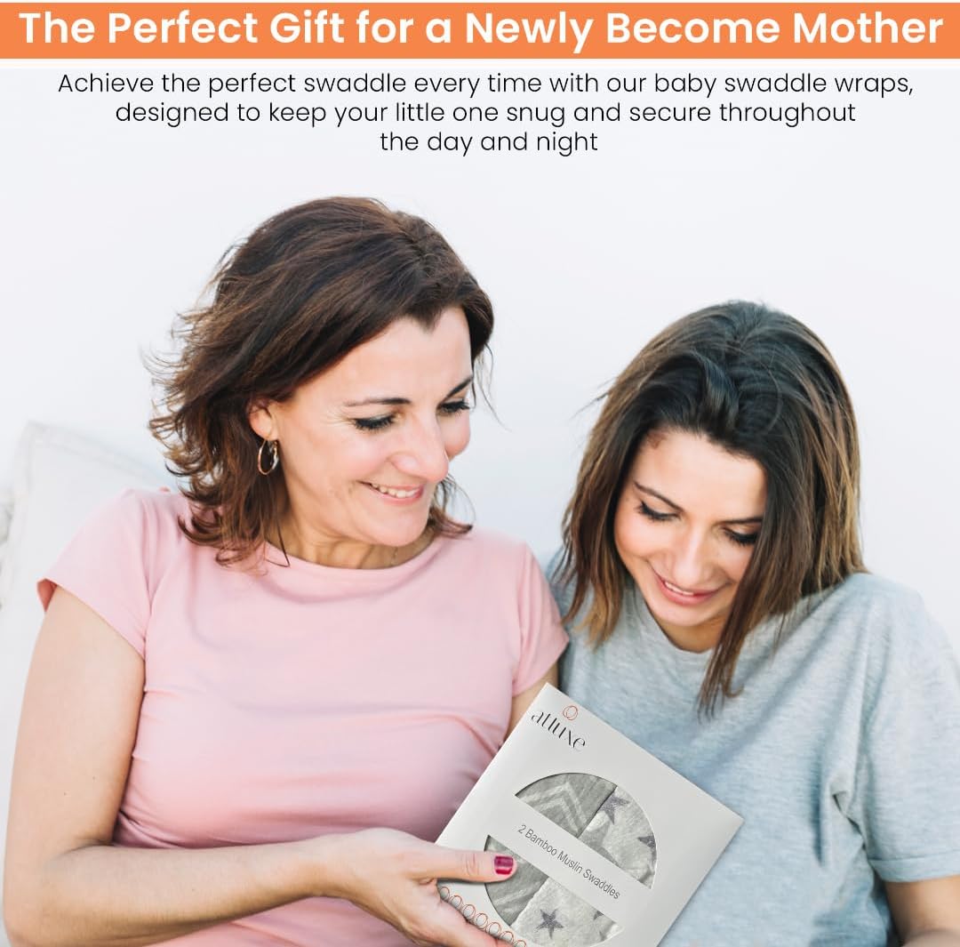 Premium Baby Swaddle Blanket - 2 Pack Muslin Swaddle Blankets Neutral, Softness Upgrade, Breathable 47''x47'' Nursery Wrap for Boys & Girls - Unisex, 70% Viscose from Bamboo, 30% Cotton (Gray)