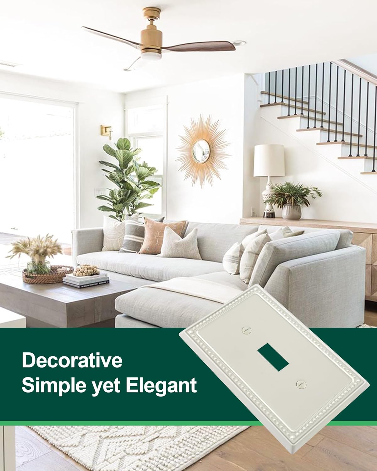 - Elegant Light Almond Finish - The light switch cover plate features a soothing light almond finish, not as dark or yellow as ivory, offering a warmer tone than stark white. This elegant finish adds a fresh appeal to your room and seamlessly blends with any interior style, enhancing the overall aesthetic of your home decor.