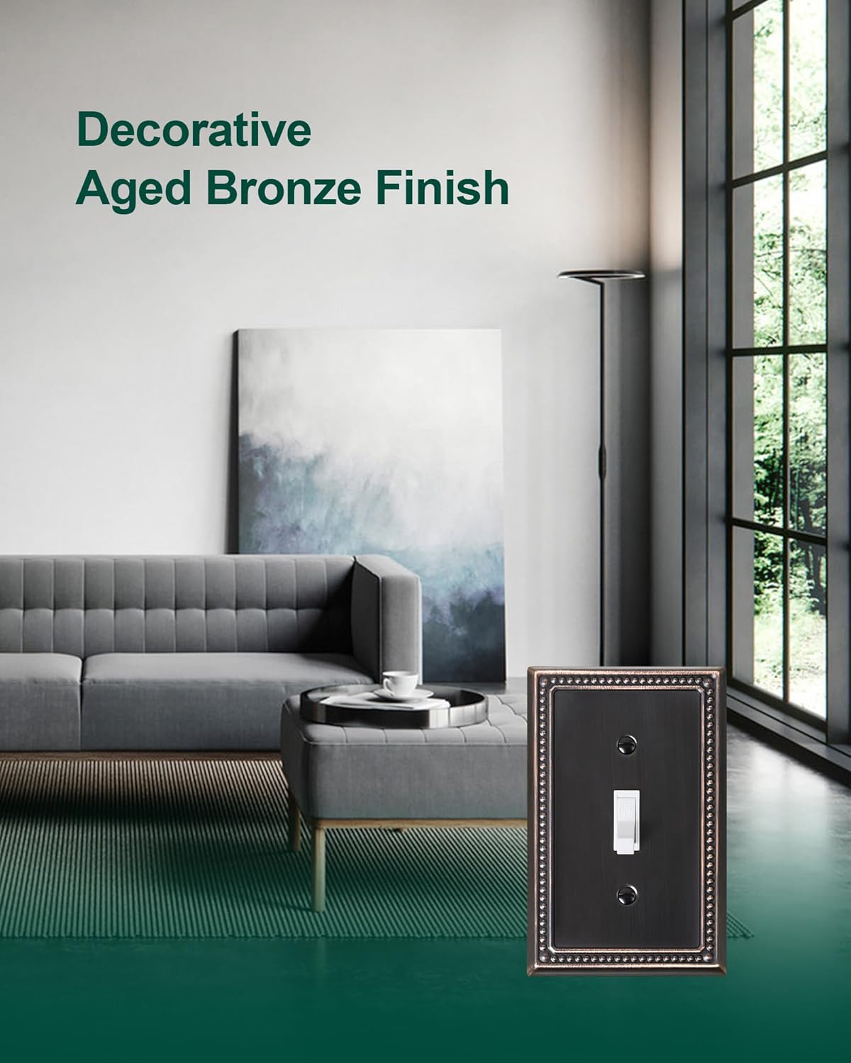 - Styling With Aged Bronze - The light switch plate cover features an exquisite aged bronzed finish with a traditionally styled beaded border. Offering a functional yet elegant enhancement to your home decor. Stylish yet retro bronze wallplate effortlessly blends practicality with a refined decorative accent and sophisticated charm.