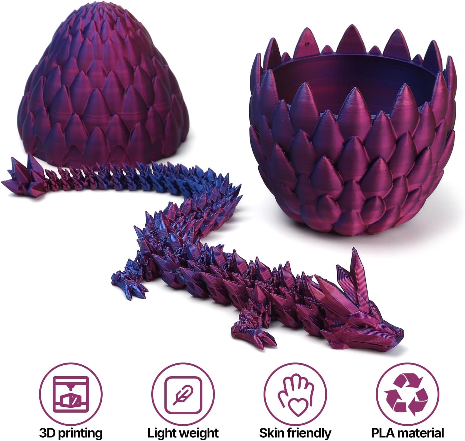 • Eco-Friendly Material: This 3D printed dragon and dragon egg is made of eco-friendly PLA material, and the complex 3D printing technology makes the dragon egg fit tightly. The details are realistic, lightweight and durable.