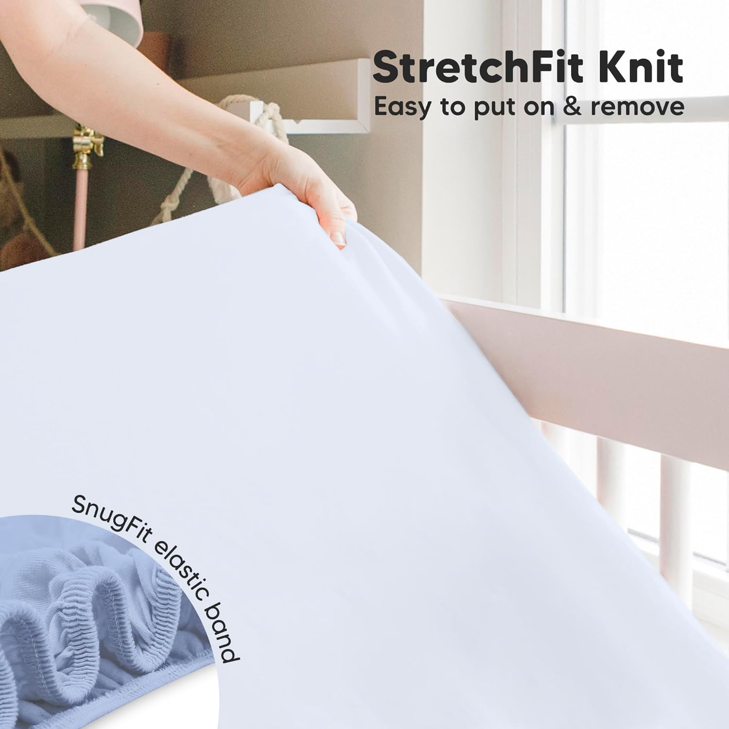 - Easy To Put On - Our KeaBabies Isla Fitted Crib Sheet uses SnugFit Tech, a smart fabric knit that allows the fabric to stretch when you are fitting the bed sheet onto the crib mattress, for easy fitting and removal of the crib sheet. No more struggling with rigid fabric.