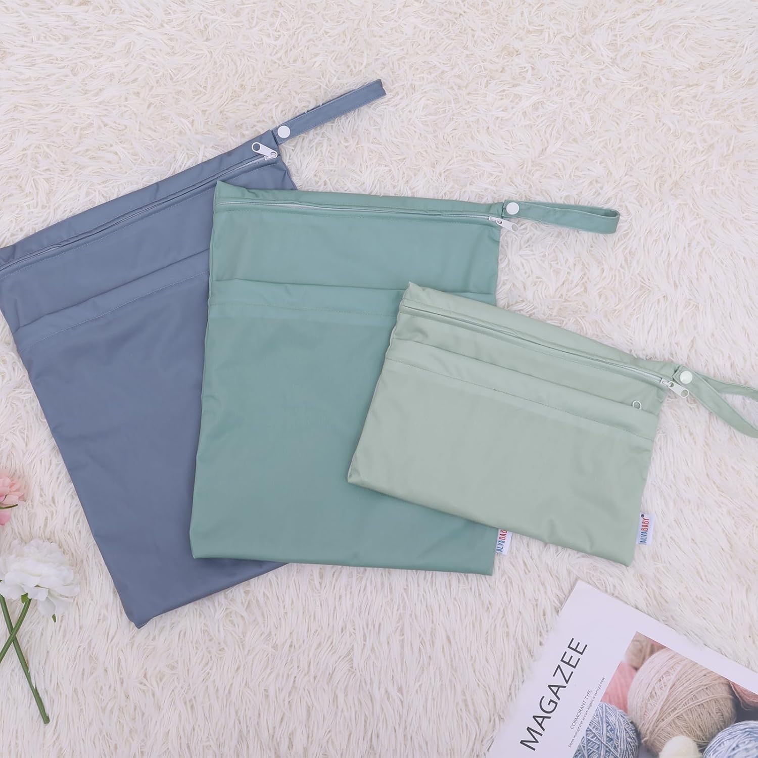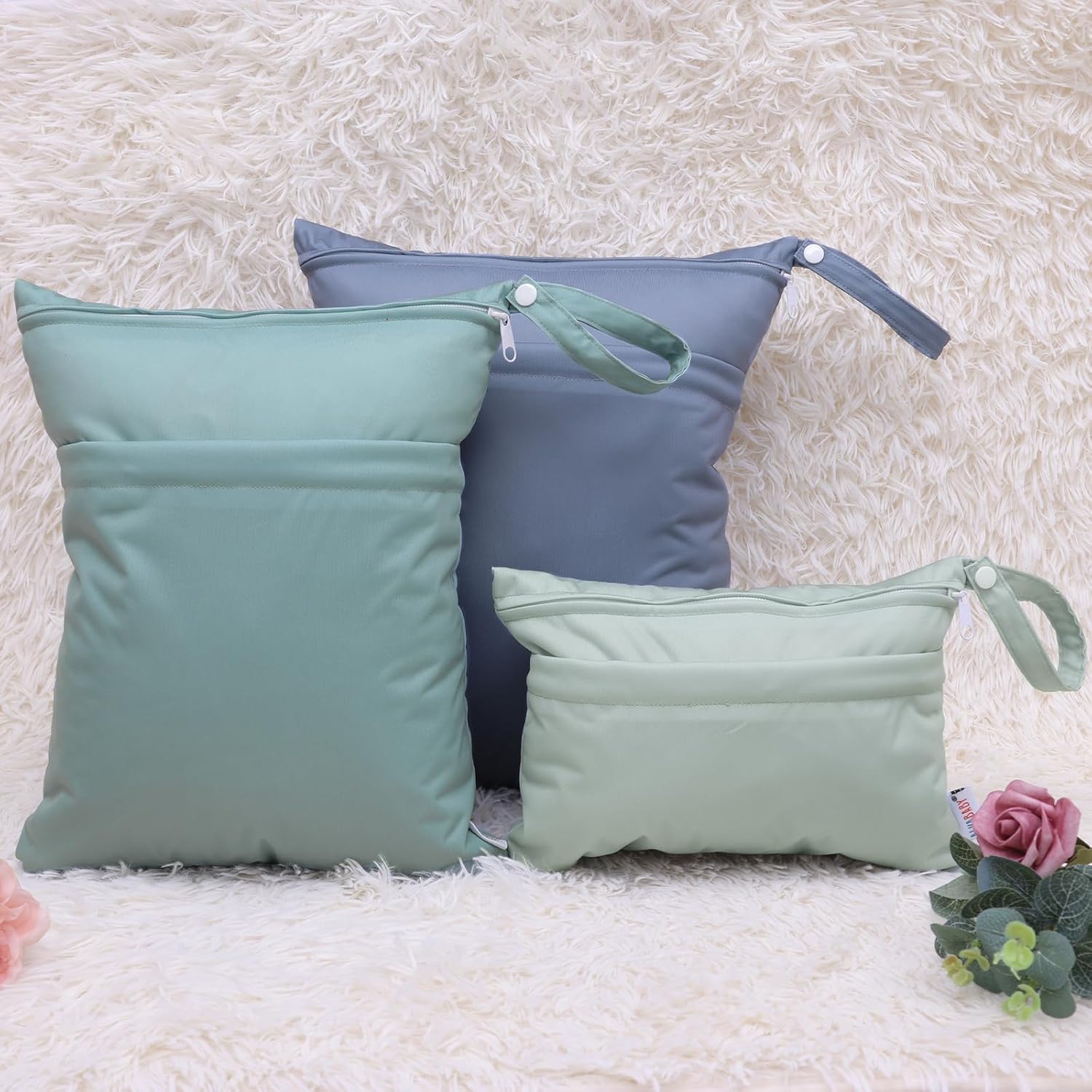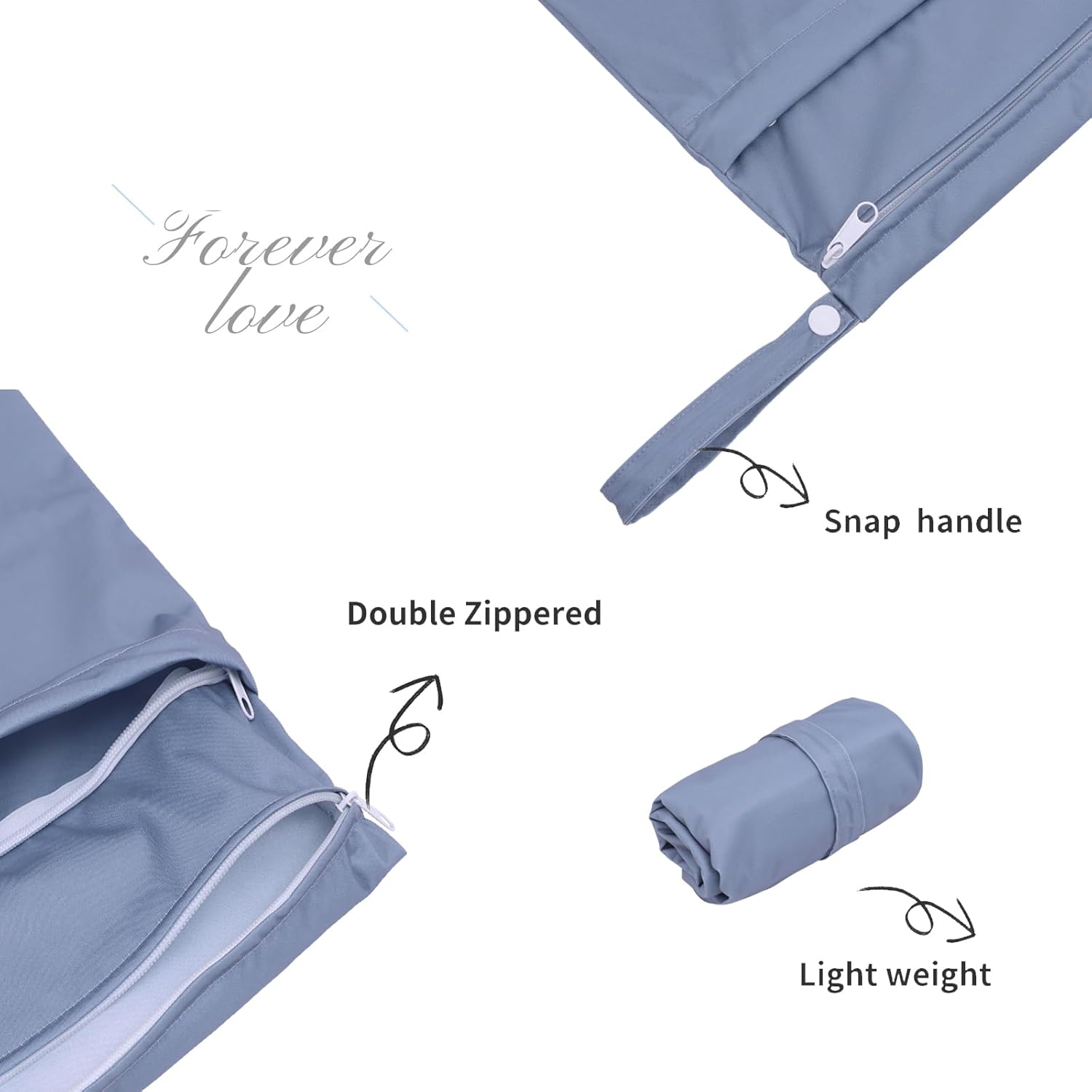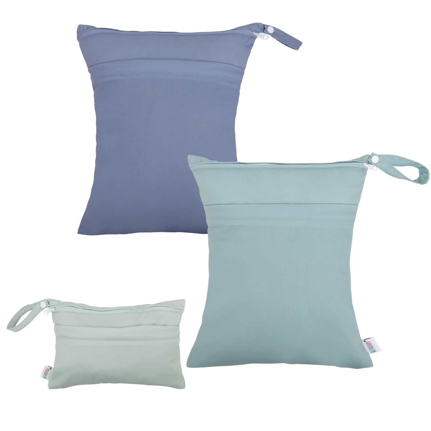 ALVABABY 3 Cloth Diaper Wet Dry Bags Waterproof Reusable with Two Zippered Pockets Travel Beach Pool Daycare Soiled Baby Items Yoga Gym Bag for Swimsuits or Wet Clothes Small medium Large3L-SML04