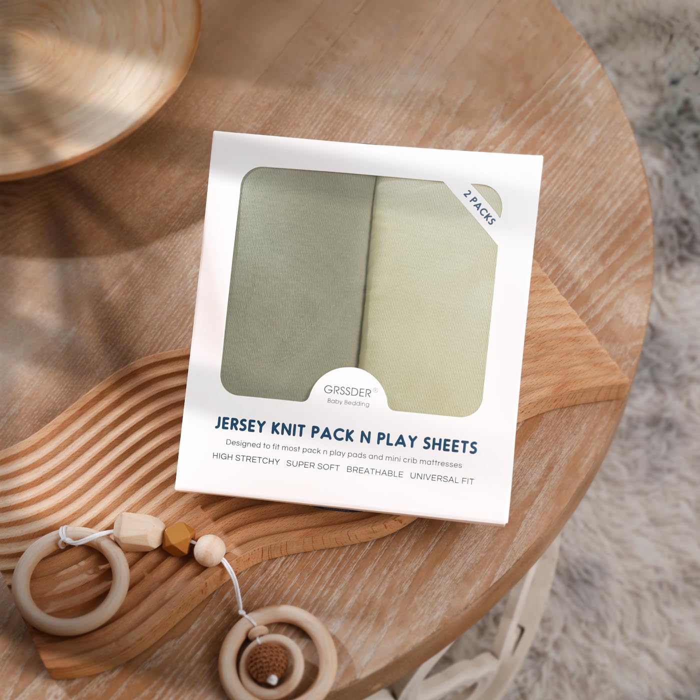 GRSSDER Mini Crib Sheets Fitted, Pack and Play Sheets 2 Pack, Ultra Soft Stretchy Pack N Play Sheets, Universal Fit for Playard Mattress, Jersey Crib Sheets for Boys and Girls, Sage Green