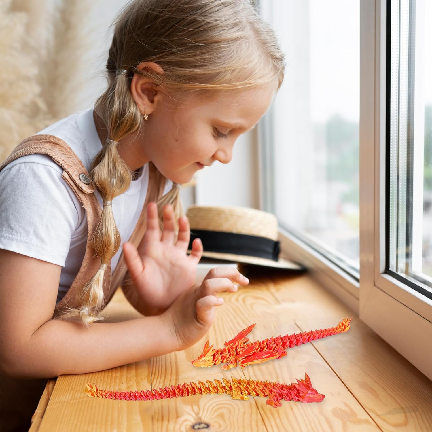 12“Crystal Dragon Without Wings & 9”Winged Articulated Dragon, 3D Printed Bulk Unique Funny Graduation Gifts for Kids, Executive Desk Fidget Toys Adults, Bath Pool water Toys (Gradient Orange-Red)