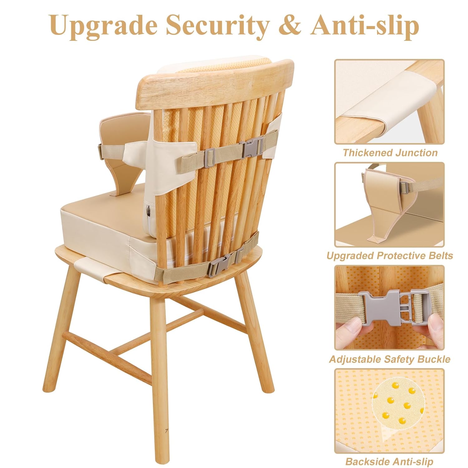 - 【Multiple Protection & Non-Slip】- Booster seat for dining table has four safety belts on the cushion, which can be fixed on the back and bottom of the chair, the safety belts on the front of the booster seat also secures your baby.There is anti-slip silicone at the bottom of the cushion to ensure that the baby booster seat does not slide off.