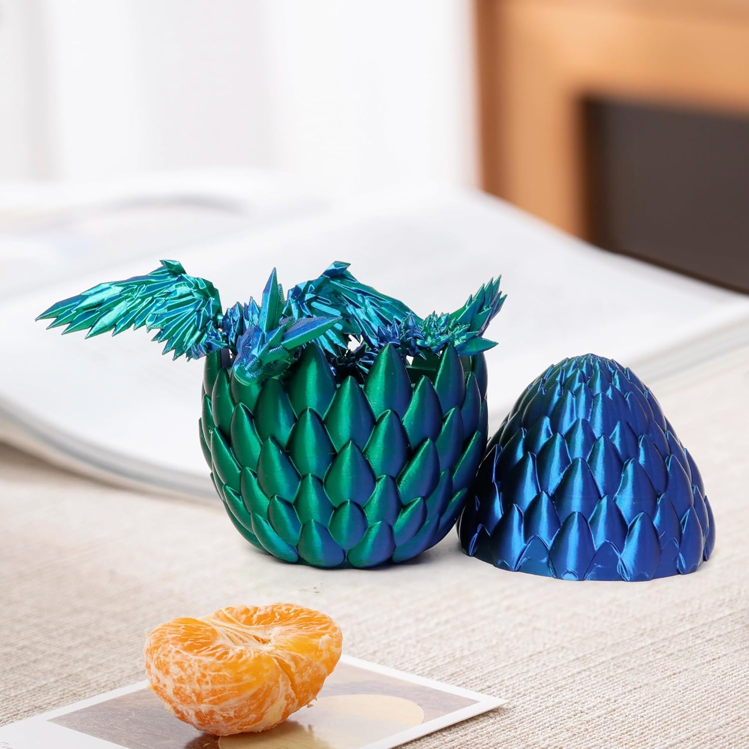 3D Printed Dragon Egg, Flying Articulated Dragon in Eggs, Flexible Joints Home Decor Executive Desk Figurine (Green Mix Blue)