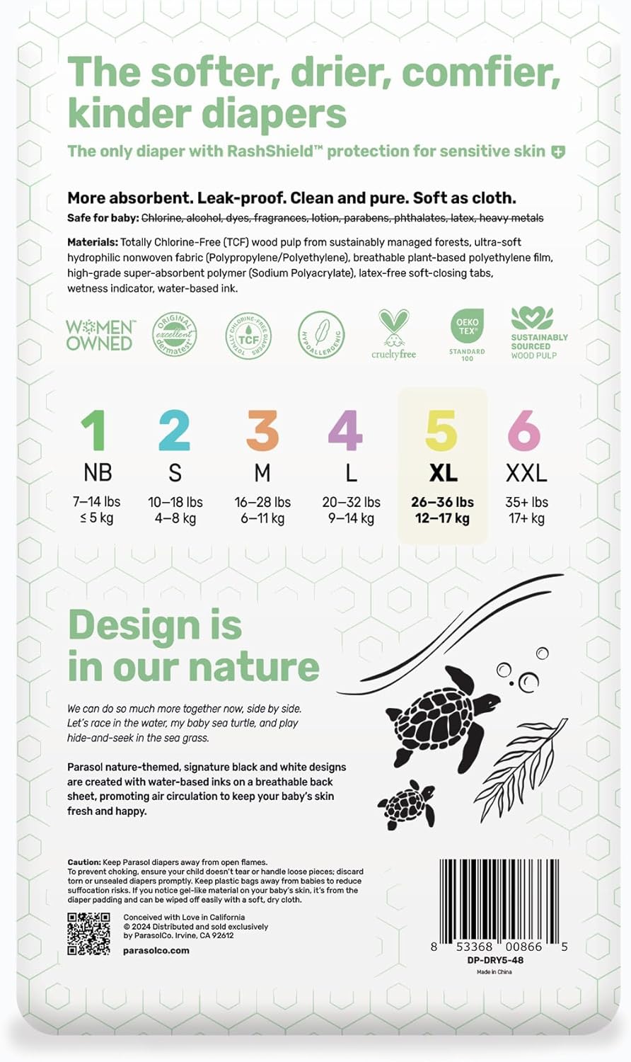 - SAFE AND CLEAN: Parasol diapers are non-toxic and free from irritants such as chlorine, alcohol, dyes, chemicals, fragrances, lotions, parabens, phthalates, latex, heavy metals and more.