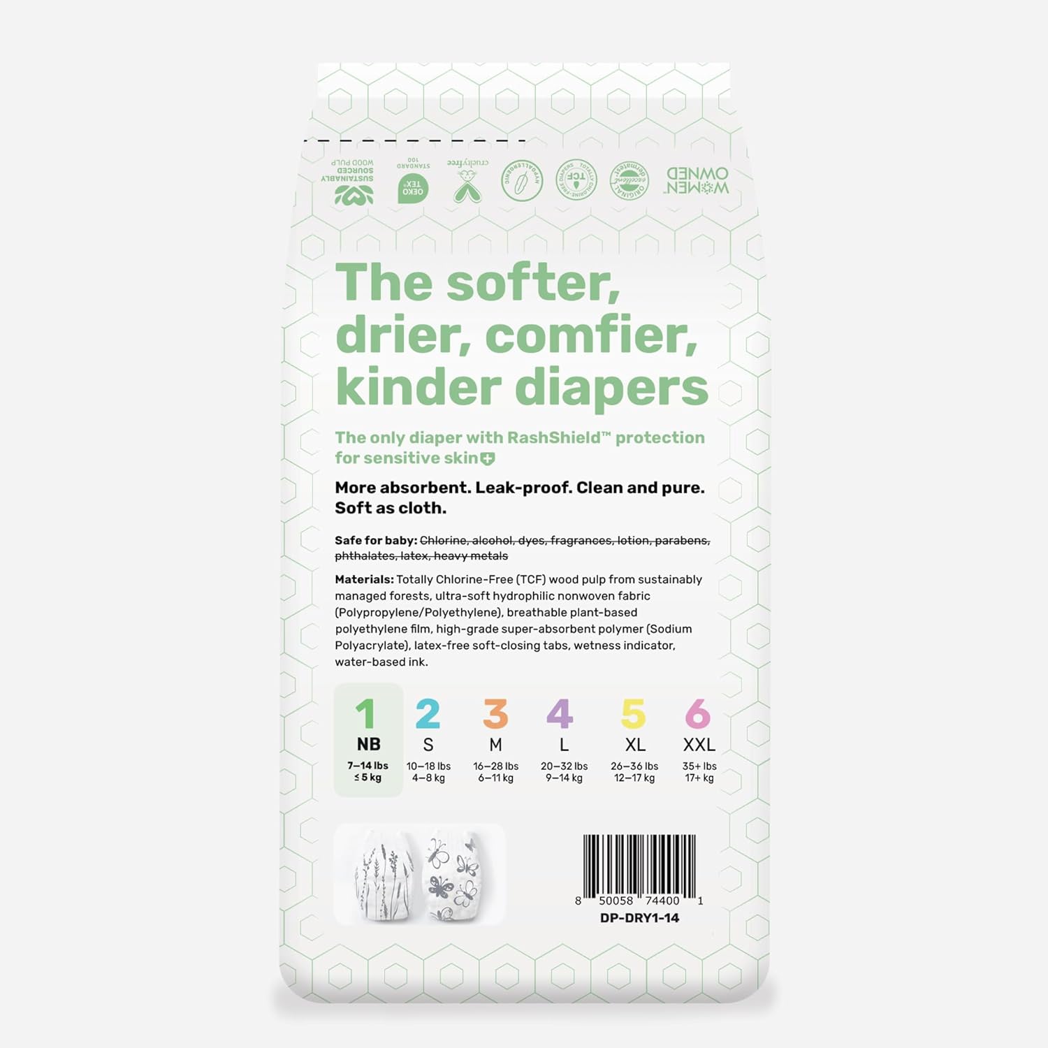 PARASOL Clear+Dry Disposable Diapers | RashShield Protection, Leakproof Design, Hypoallergenic | Size 1, (7-14 lbs) 84 Count