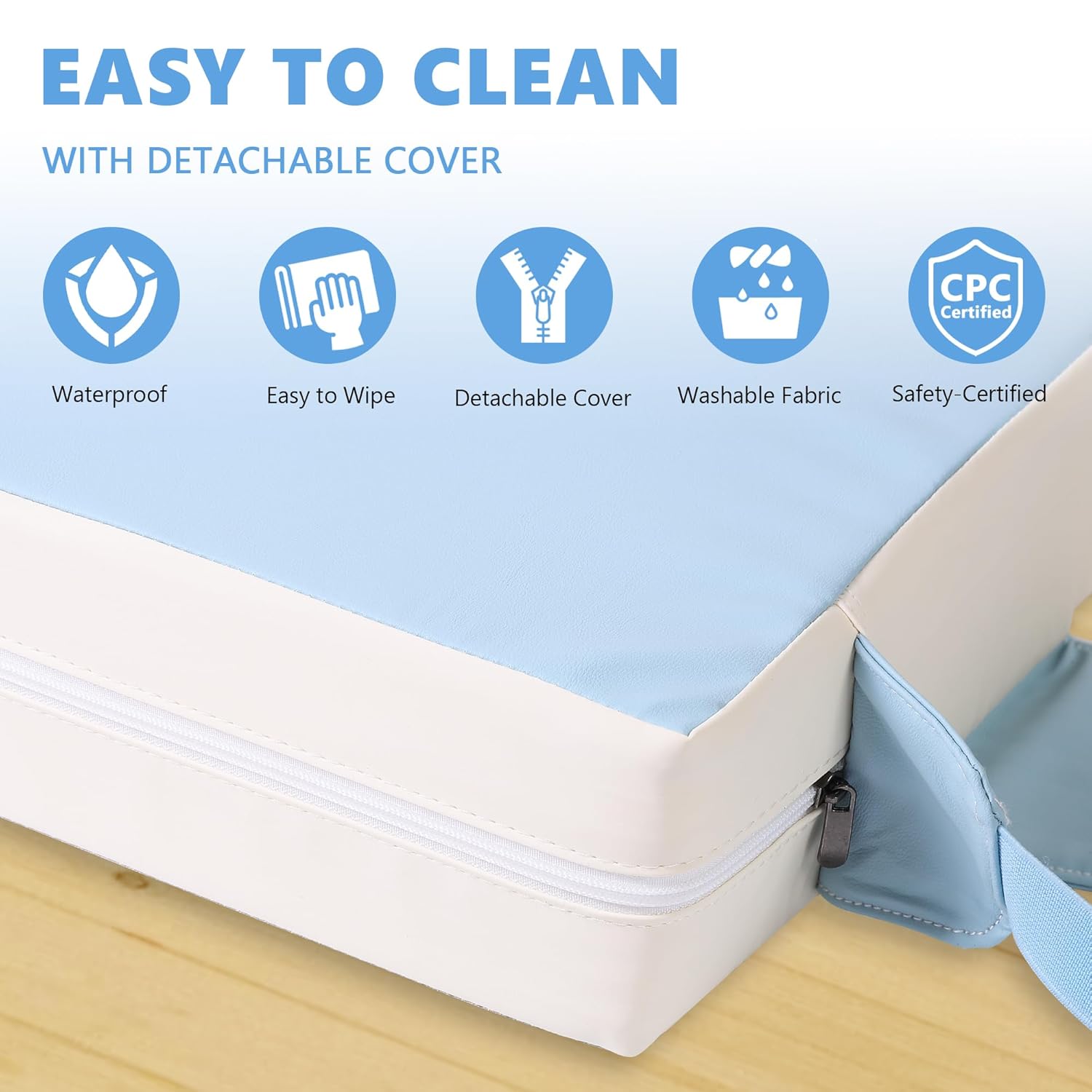 - 【Detachable for Easy Washing】The booster seat cover can be removed by unzipping, making cleaning a breeze. When spills or stains occur, simply remove the seat cover and toss it in the washing machine. The removable cover ensures that you always keep the seat clean and hygienic, providing a fresh and pleasant seating experience for your baby.