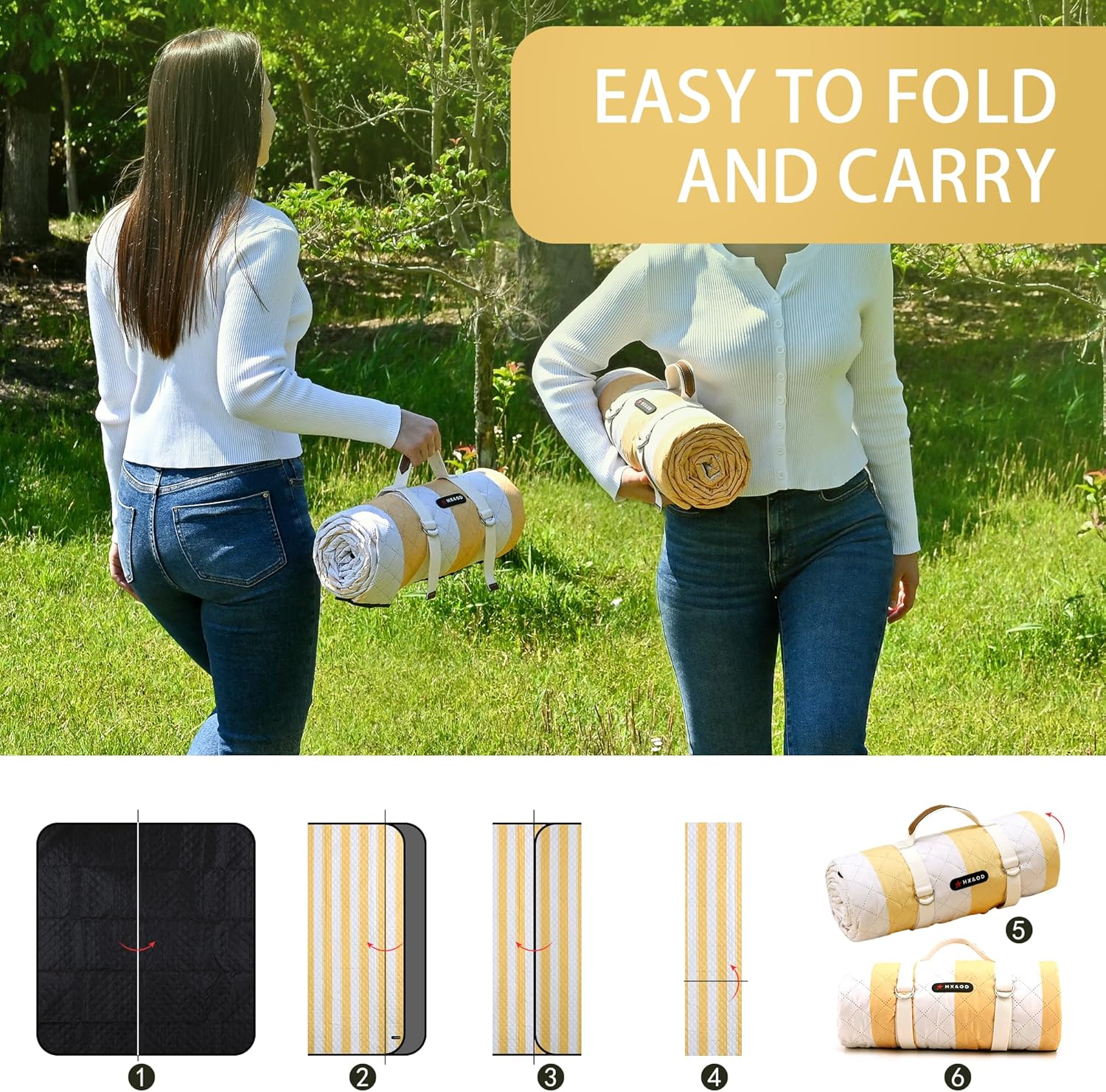 - ☀ 【Waterproof & Machine Washable】Outdoor picnic blanket is super easy to clean due to its durable and waterproof backing, easily shake & wipe off dirt, mud, wet grass, and beach sand. And you could put it into washing machine to save your time and free both hands.