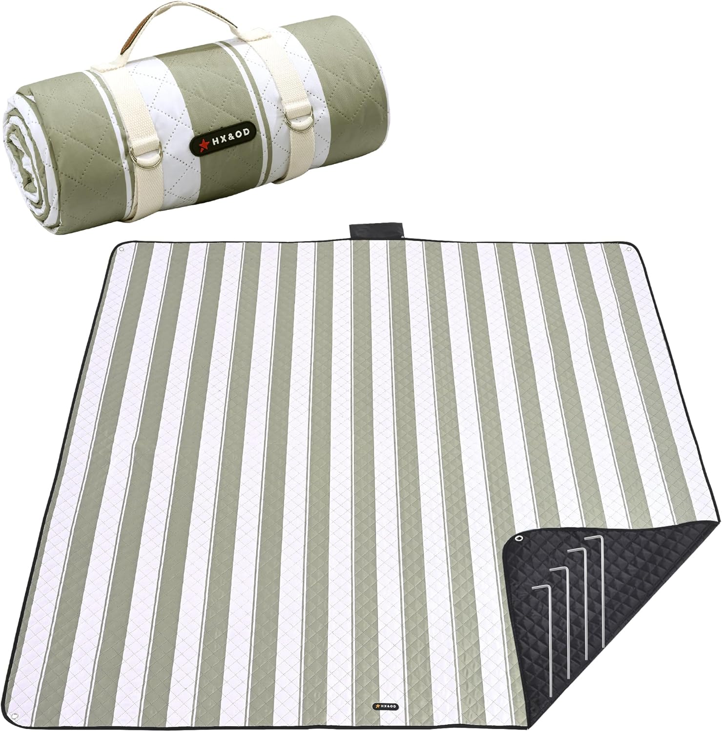 HX&OD Outdoor Picnic Blanket Extra Large, 80''*80' Waterproof Picnic Mat with Stakes Foldable Camping Blanket Portable with Carry Strap for Beach Mat (Green, 80''*80'')