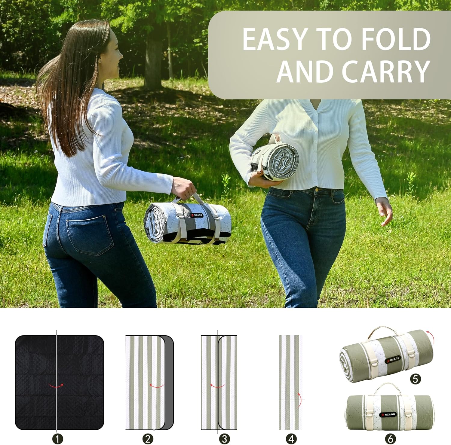 - ☀【Easy to Fold & Lightweight】Large picnic blanket can shrink down to a very portable size of 12"L x 4"W x 4"H. This Picnic blanket with stakes will not loose easily and take too much space. The weight of the mat is only 1.8lbs, you can fold it with simple steps, carry or store it anywhere you want.