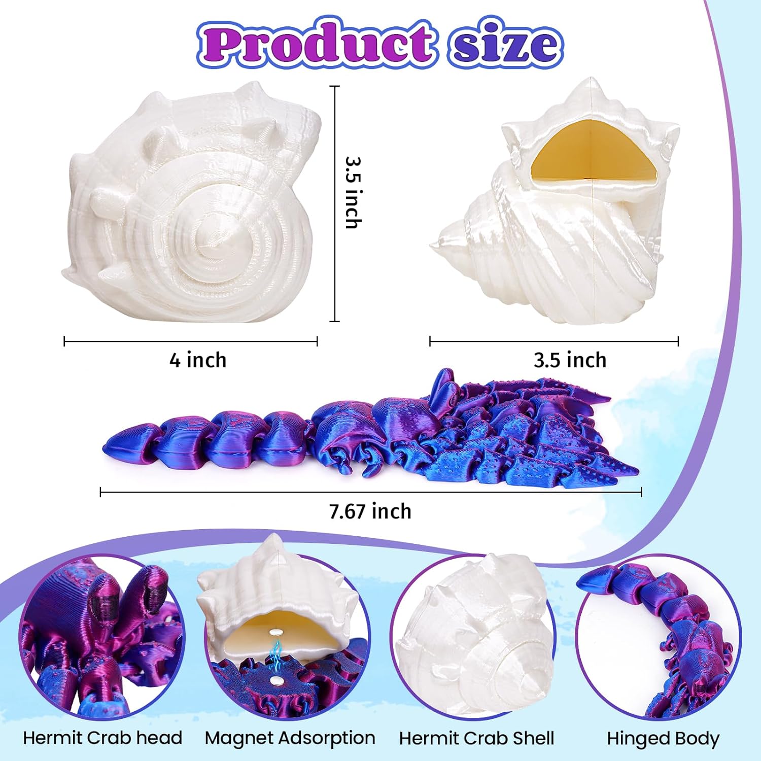 - 🏆【3D printed hermit crab toy】: This 3D printed hermit crab toy, with its fully articulated and flexible design, allows the hermit crab to fidget in various postures. Its dynamic expression will bring you unlimited fun and surprises.