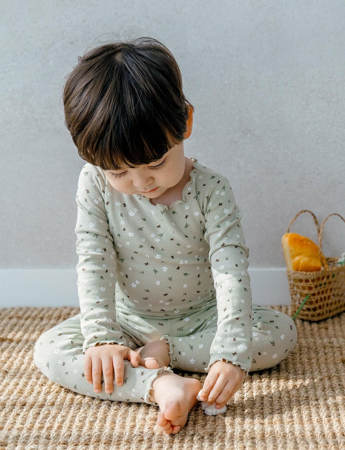 AVAUMA Baby Boy Girl Pajama Set 6M-7T Kids Cute Toddler Snug fit Flower Pattern Design Pjs Cotton Sleepwear Ruffled Shirring