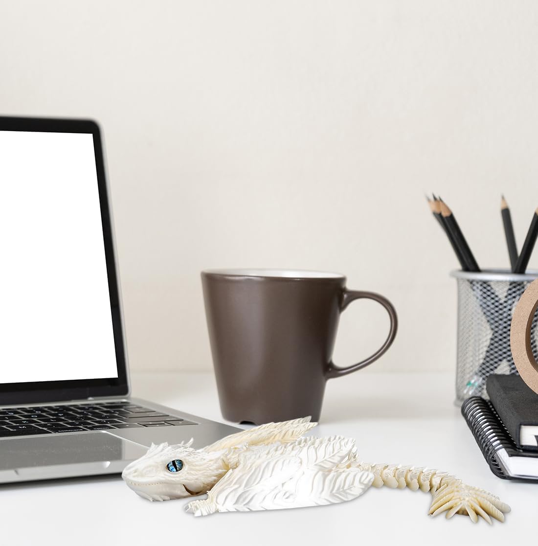 3D Printed Dragon with Wings 3D Printed Animals Articulated Dragon Fidget Dragon 3D Printed Toys Dragon Toy Desk Pets Home Office Decor (White)