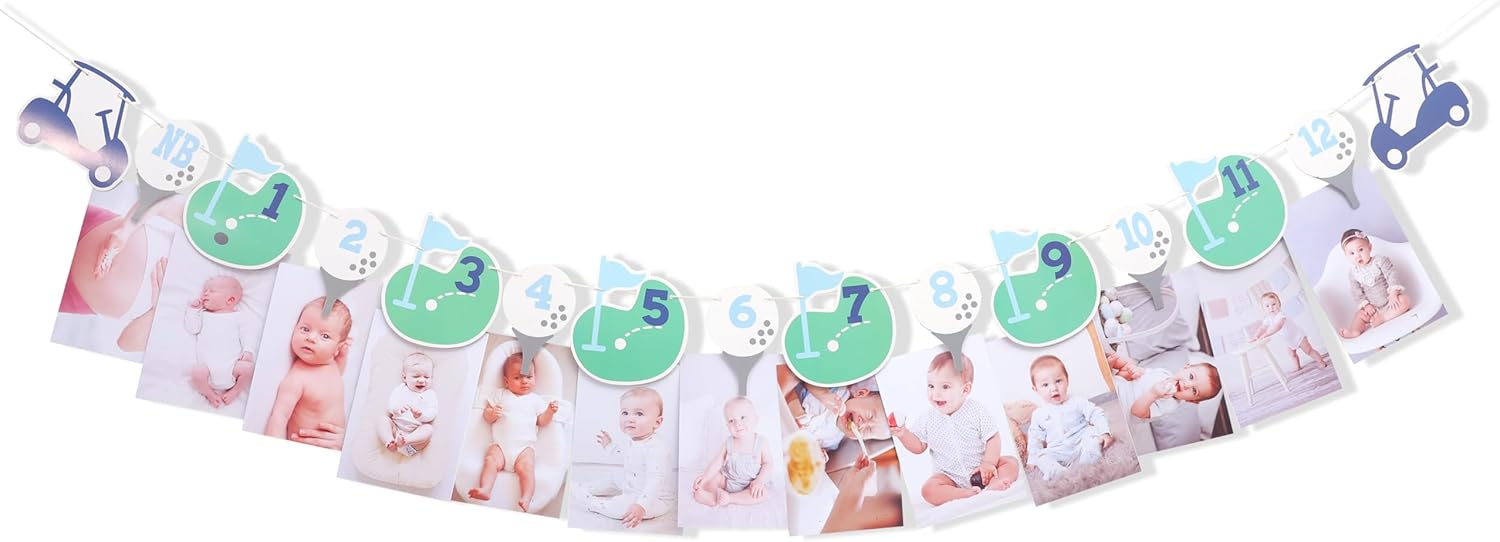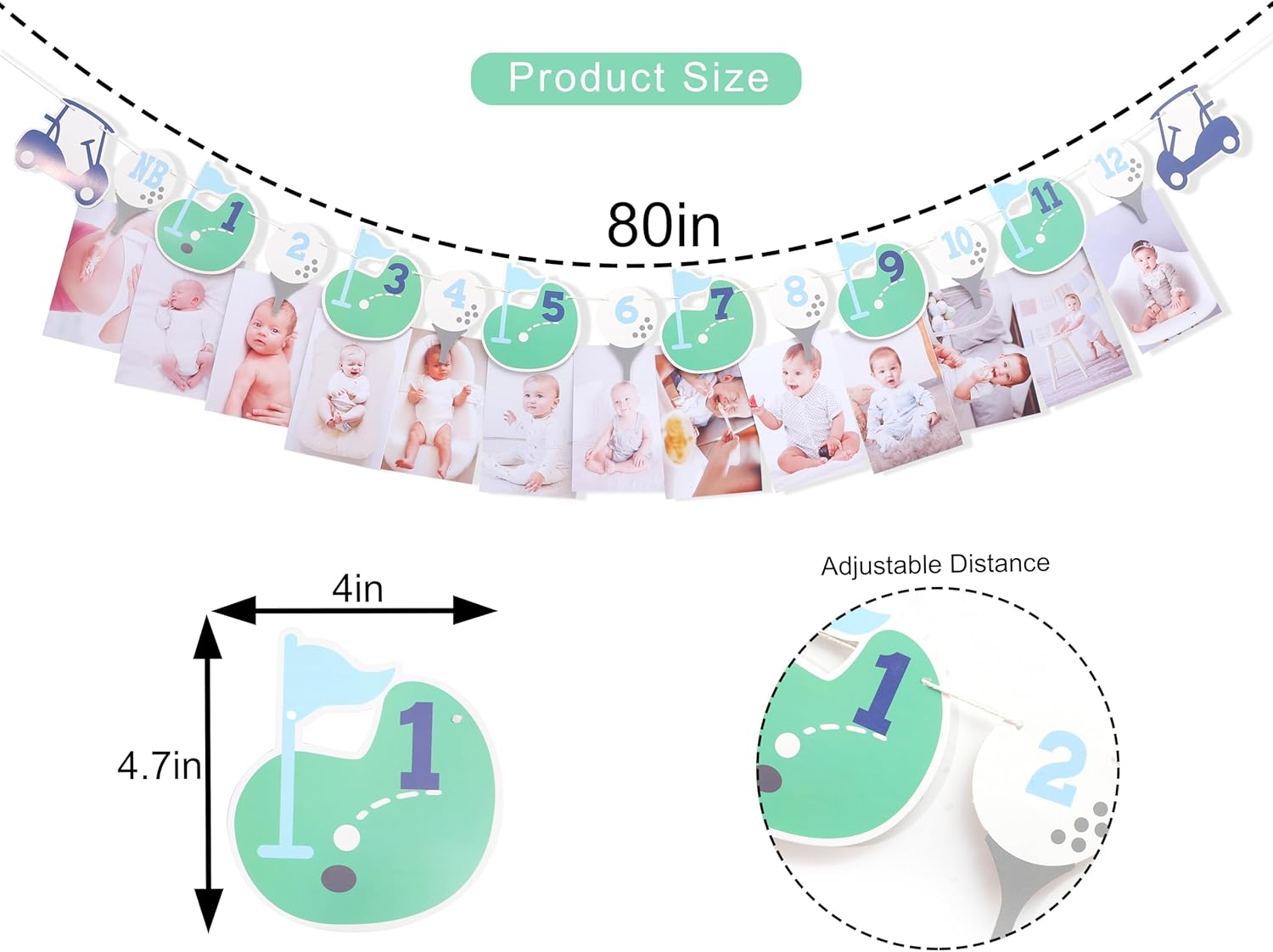 - Find Golf Decorations - This Eye-Catching Golf 1-12 Month Photo Banner Is Perfect For Decorating For Baby's First Birthday, And Can Also Be Used As A Photo Prop, Especially For Cake War Photos.