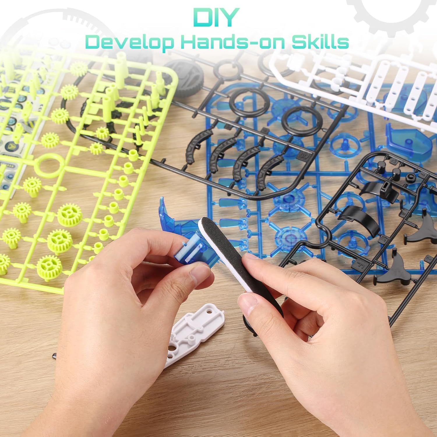 - Suggestion: Pay attention to safety when cutting parts, use tools to polish the small parts before building. Our packing included a grinding tool to help you make the parts smoother. Keep the parts organized in small zip-lock bags after cutting or playing