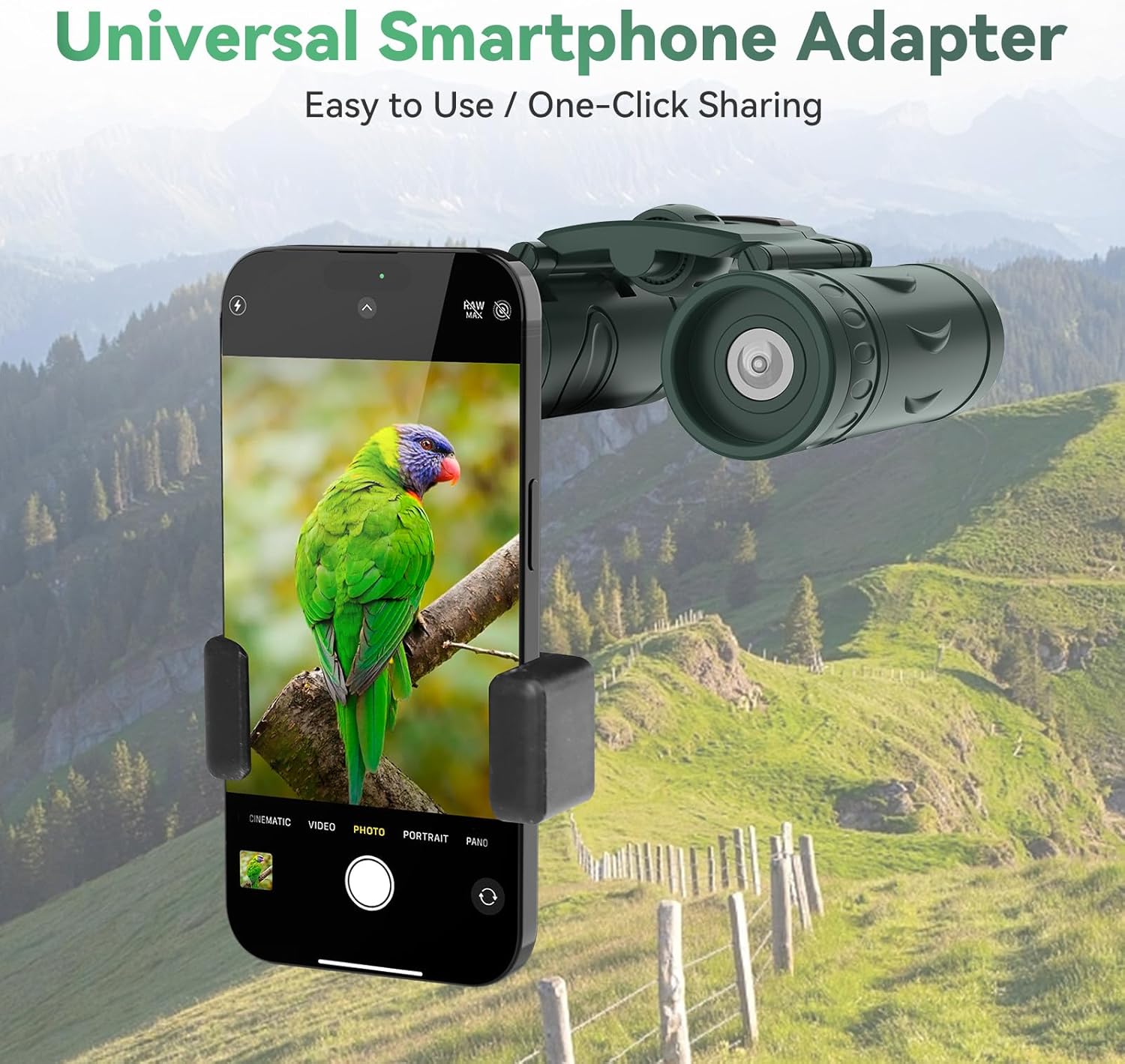 - 2025 Upgraded Binoculars with Neck Strap & Portable Bag & Phone Adapter - The neck strap is adjustable to meet adult and kids. A carry bag to keep the binoculars clean, protective and portable.High power binoculars with phone adapter,Soft anti-slip rubber on the surface, more sturdy structure design and screw locks phone firmly and stably from three directions.