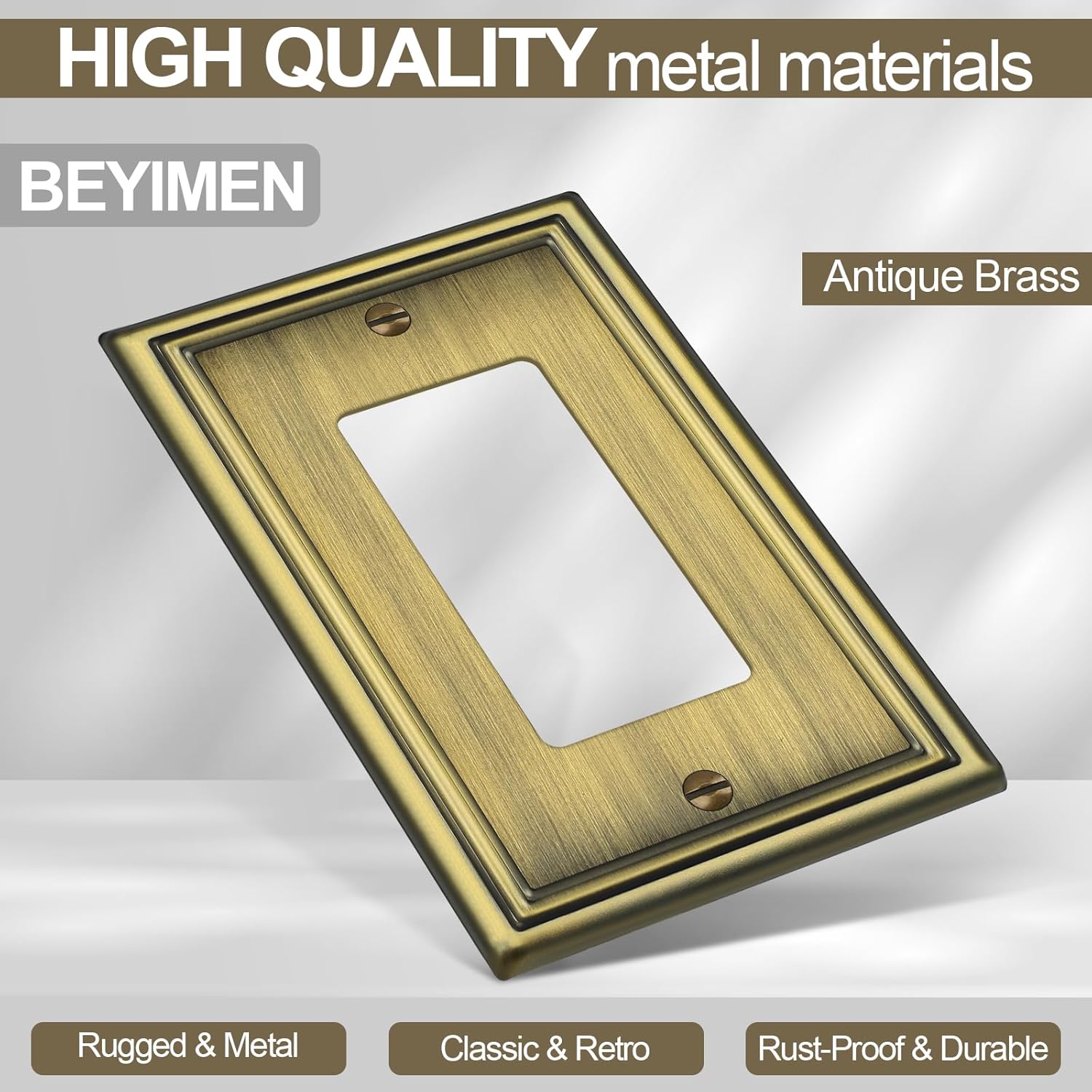 6 Pack Single Decorator Switch Covers Wall Plate, Antique Brass Decorative Rocker Switch Plates Outlet Covers for Receptacle, GFCI Outlet, Dimmer - Classic Style, 1 Gang Decorator