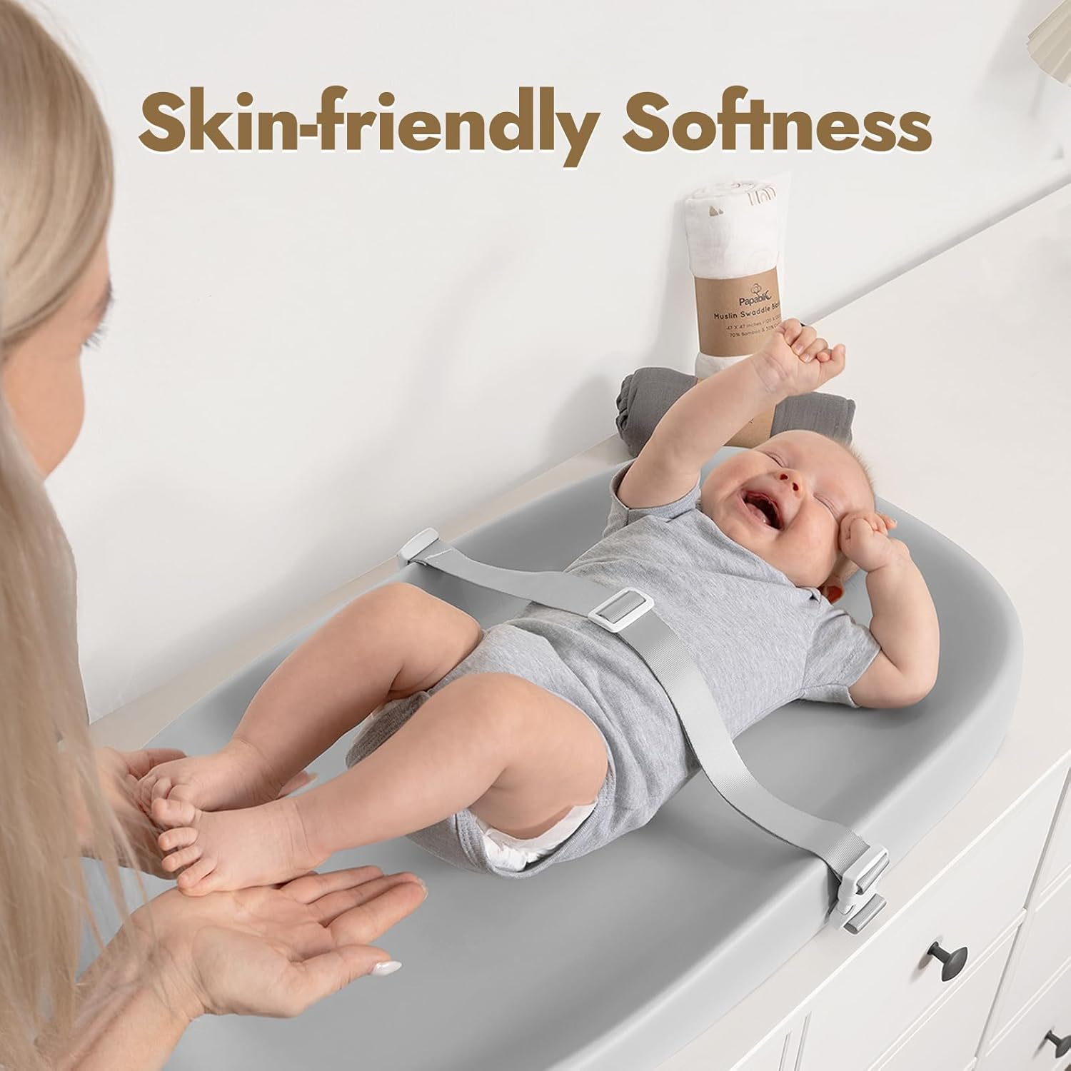 Papablic Wipeable Baby Changing Pad with Removable Safety Strap, Easy to Clean & Non-Slip Waterproof, Changing Pad for Dresser,Bed
