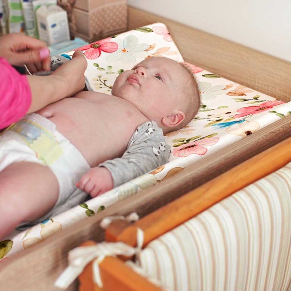 4 Pack Baby Girl Changing Pad Covers Sheets Set Soft Fitted Floral or Elephant Theme Baby Girl Mattress Covers Breathable Toddler Bed Sheets for Infant or Newborn Girls (Flower, Changing Pad Covers)