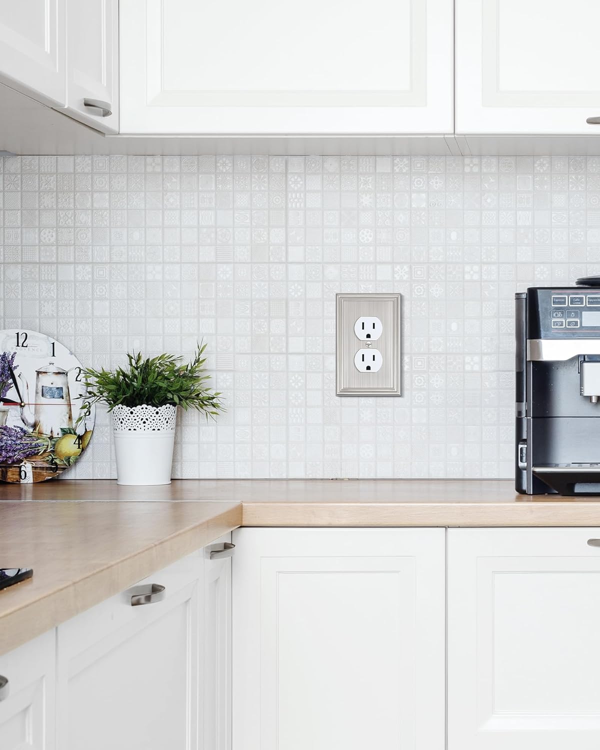- Elevate Your Decor - The brushed nickel wall plate boasts simple, clean, and elegant lines with brushed texture. Its sleek and modern design, adds a touch of elegance and a refined decorative accent to any room, seamlessly integrating into any decor style and providing a timeless yet sophisticated look that will make your decor stand out.