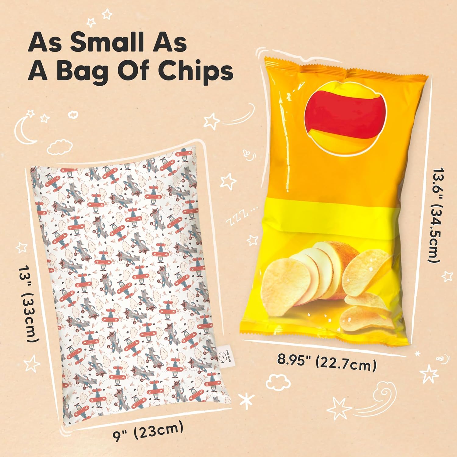 Mini Toddler Pillow with Pillowcase - 9x13 My Little Dreamy Travel Kids Pillow for Sleeping, Toddler Bed, Small, Tiny, Organic Cotton Pillowcase, Soft & Breathable, Kids 2-4 Years Old (Aircraft)