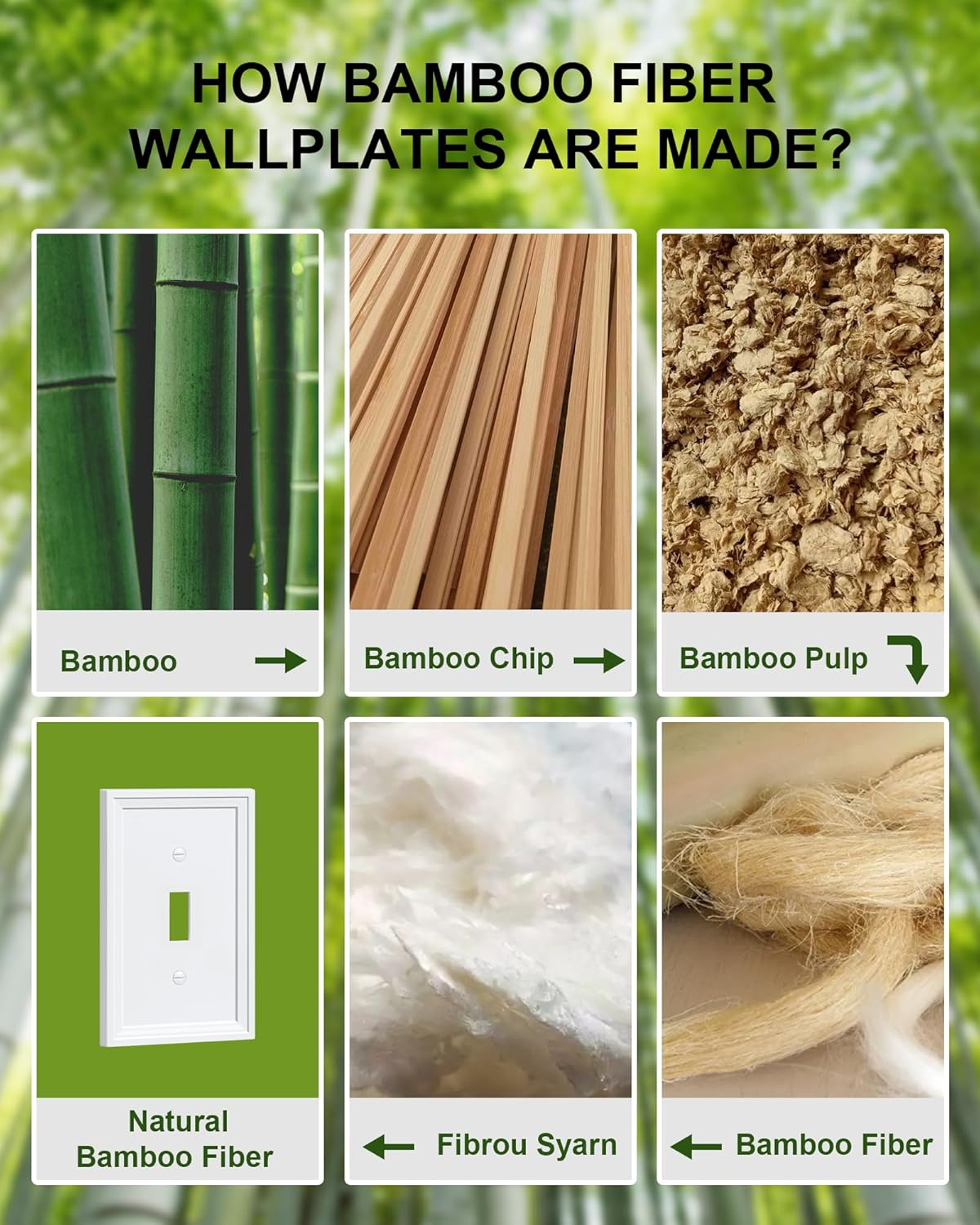 4-Pack Single Toggle Light Switch Covers Wall Plate, Pure White Decorative Switch Plate Covers, 1 Gang Natural Bamboo Fiber Wall Plate, Corrosion Resistant
