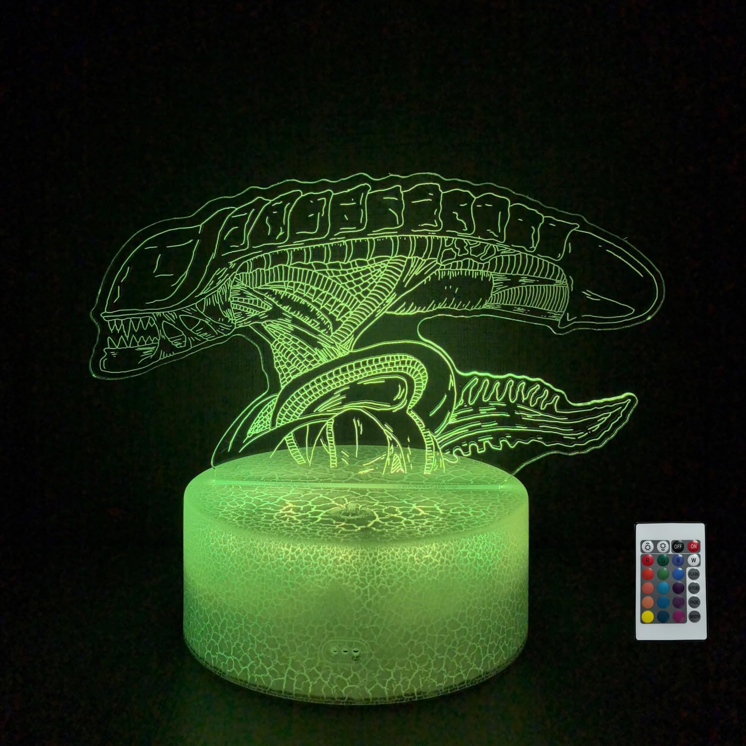 3D Alien Night Light, Monster Illusion Table Lamp with 16 Colors Remote Control Touch Lamp LED USB Night Light Desk Lamps Room Decorations Home Decor Holiday Birthday Light