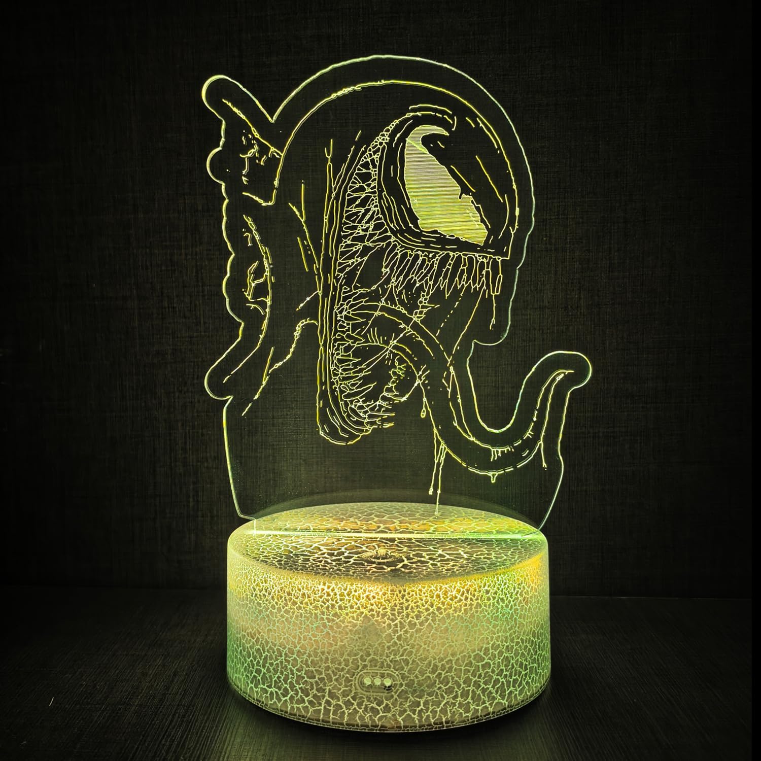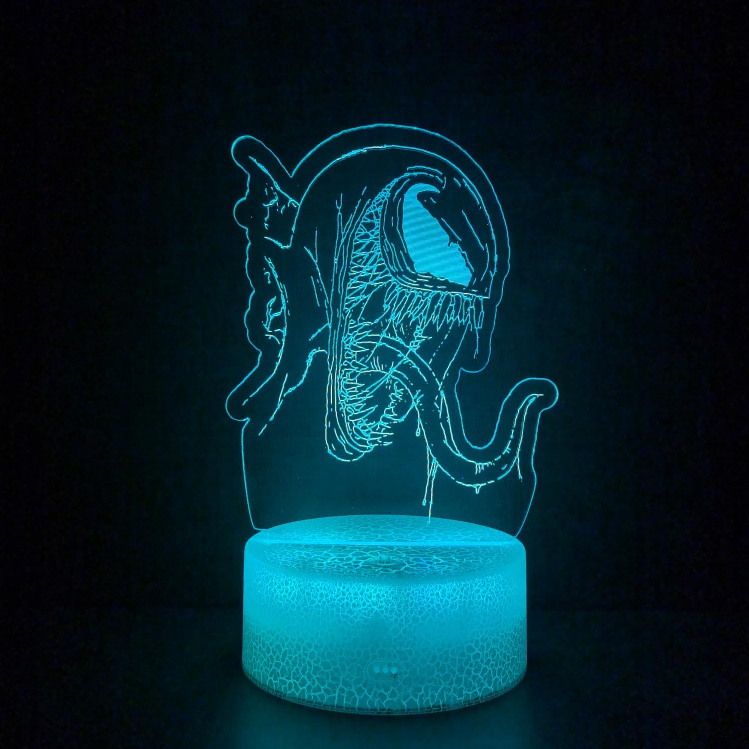 3D Night Light, Alien Monster Illusion Table Lamp with 16 Colors Remote Control Touch Lamp LED USB Night Light Desk Lamps Room Decorations Home Decor Holiday Birthday Light