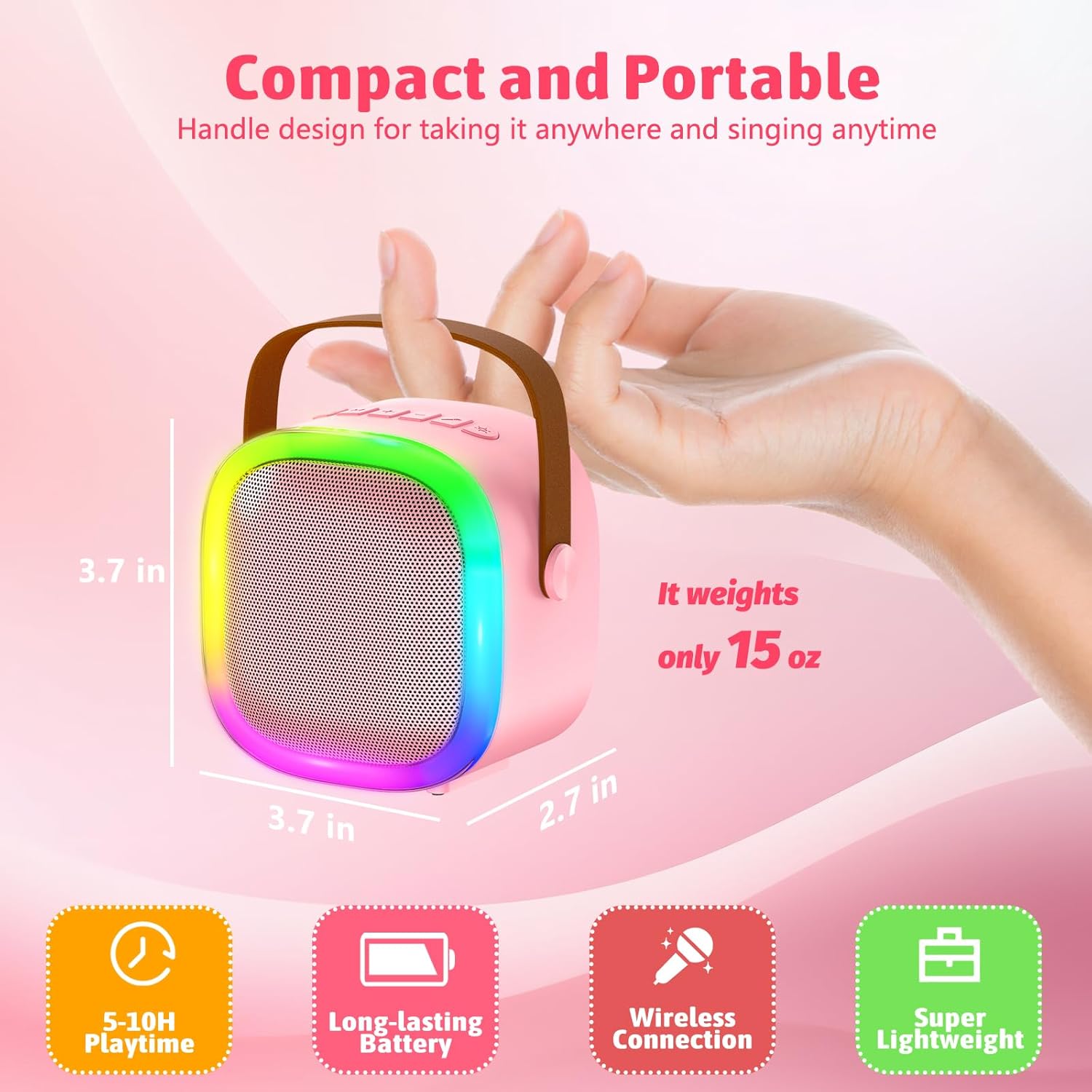- 【Compact and Portable】Mini kids karaoke system is designed with a durable handle,which is lightweight, wireless and highly portable.Perfect for family gatherings, birthday party, school activities,travel etc.Ensuring endless fun and creativity for children while the colorful LED lights sync to the music.Ideal Christmas gift for girls 3 4 5 6 7 8 9 10 11 12 years old