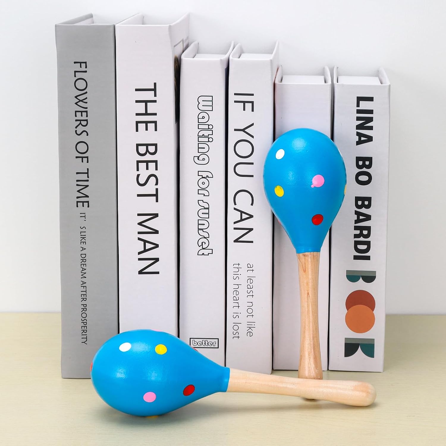 2 Pcs Maracas, Hand Percussion Rattles for Kids, Wooden Rumba Shaker Hand Musical Instruments with Clear Rhythm for Kids Adults Playing (Blue)