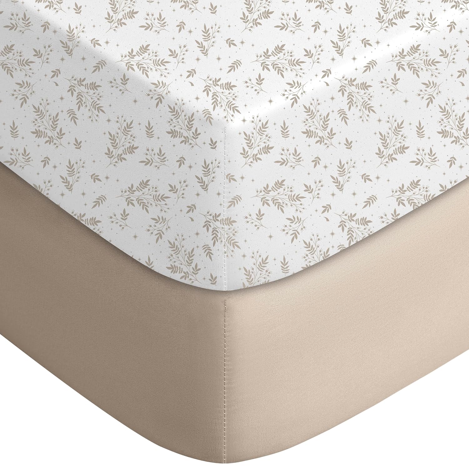 Yoofoss Pack and Play Sheets Fitted, Mini Crib Sheets 2-Pack for Pack N Play Mattress, Stretchy Playard Sheet, Soft and Breathable Brown+Leaf