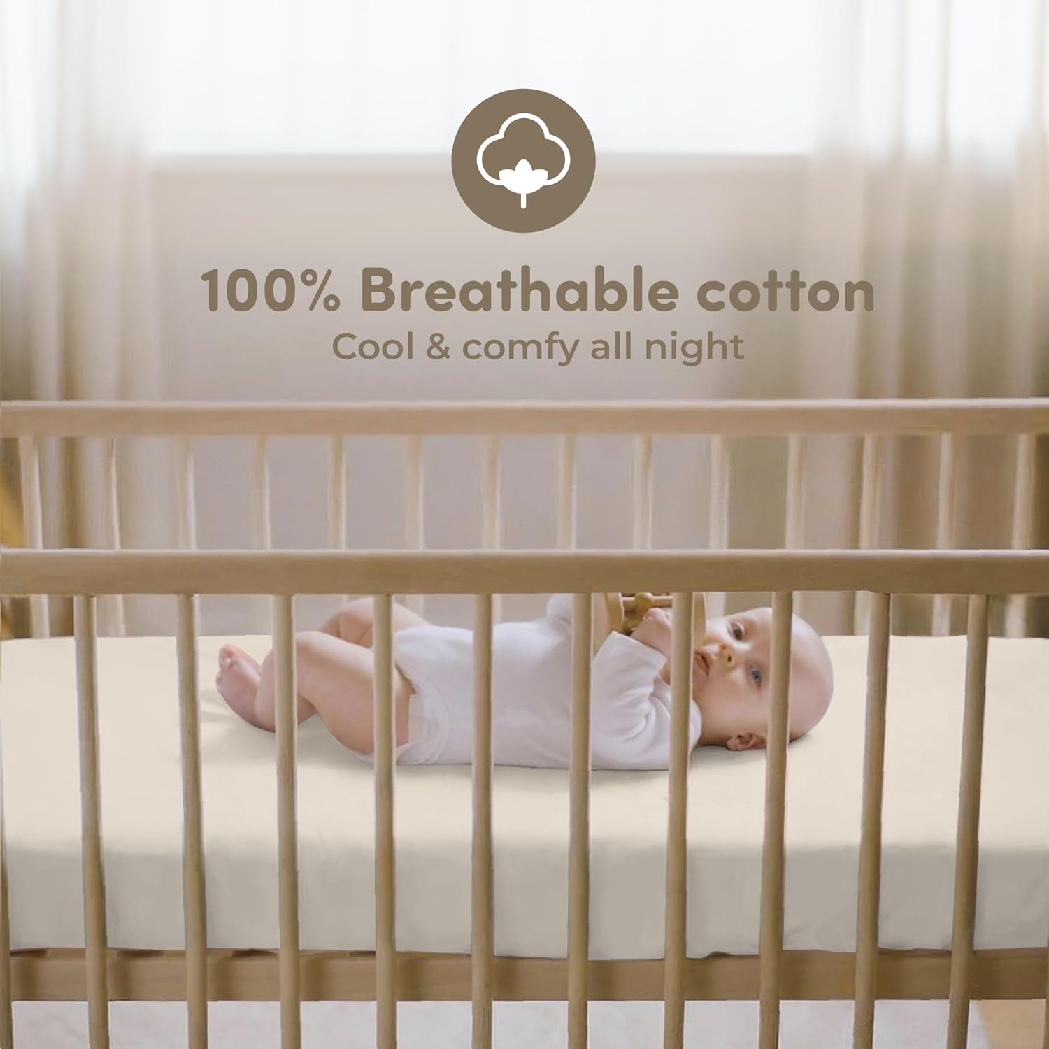Sweety Fox 2-Pack Crib Sheets - Soft Cotton Jersey Fitted Sheets for Boys and Girls, Mini Crib Sheets, Toddler Bed Sheets (Pecan/Cream)