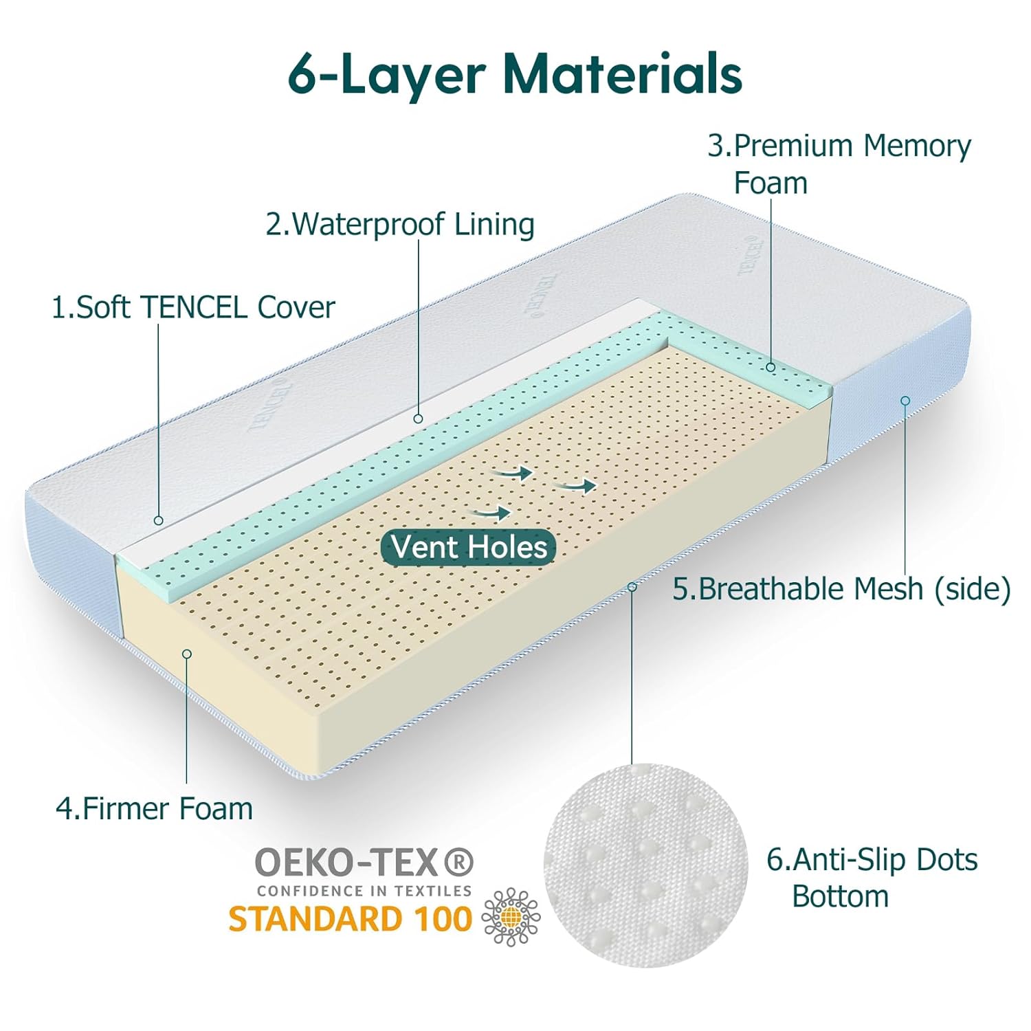 - ăHIGH-QUALITY TENCEL PROTECTORă High-quality mattress cover made of 44% Tencel and 56% polyester fiber, which is skin-friendly and breathable