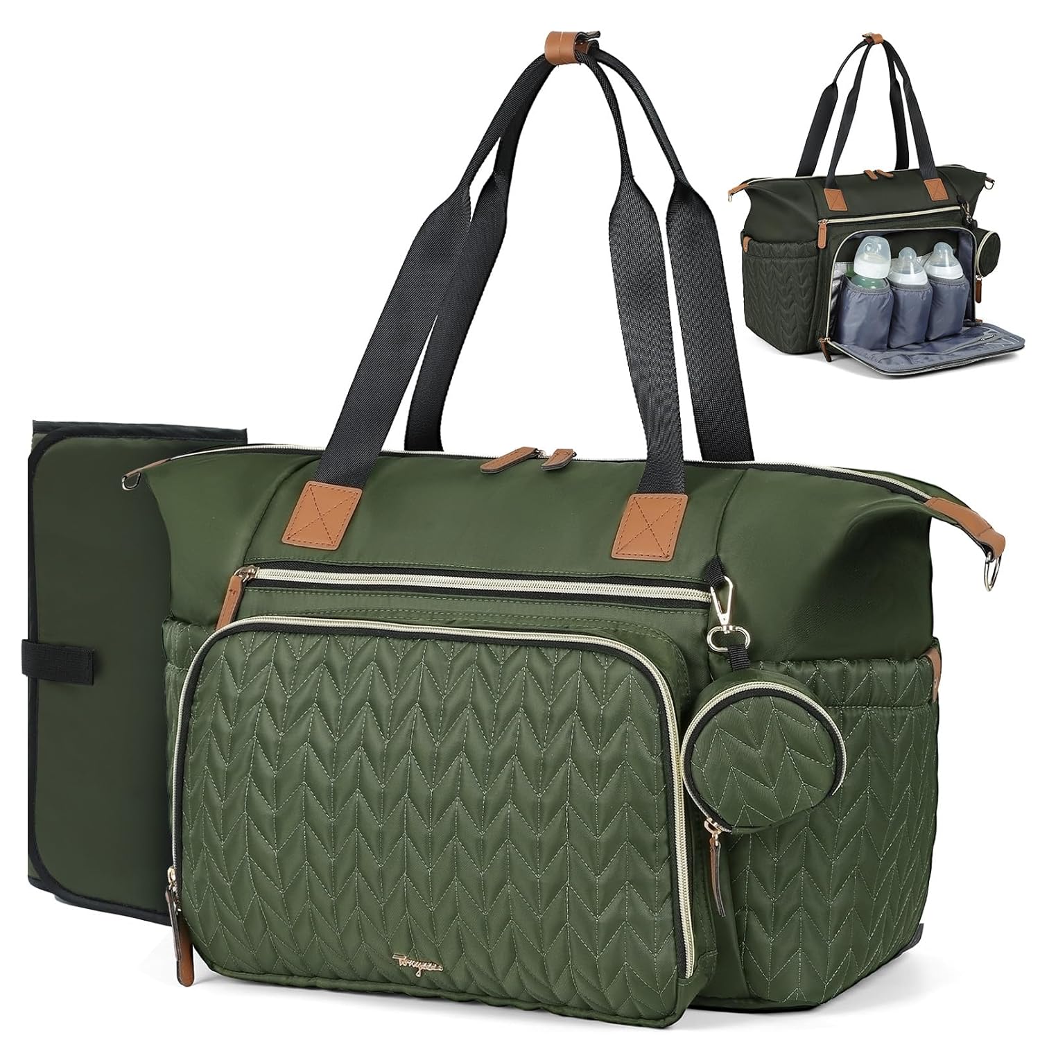 Diaper Bag Tote, Large Baby Diaper Bags Waterproof, Hospital Bag for Labor Delivery with Pacifier Case, Changing Pad, Shoulder Strap, Dark Green