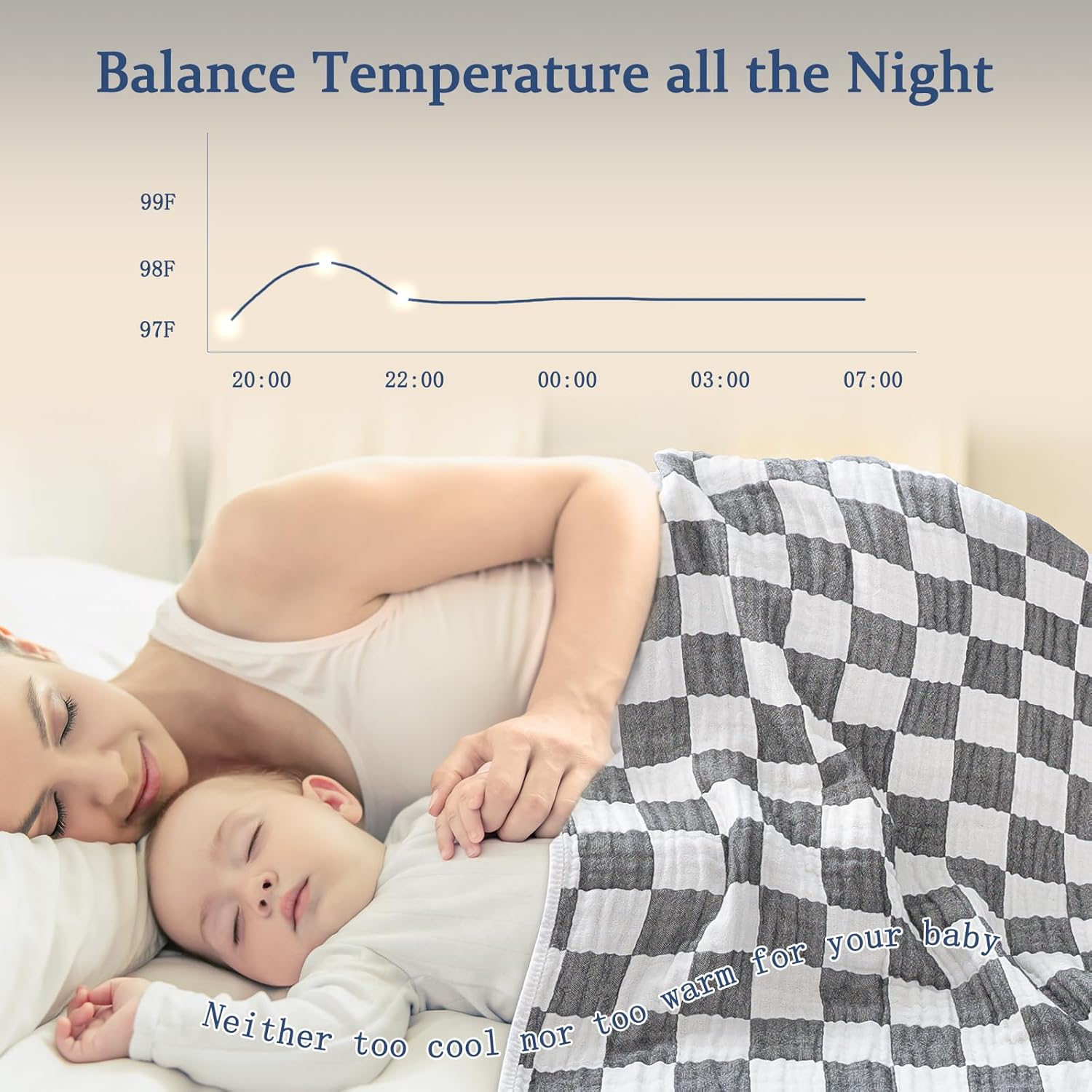 Muslin Swaddle Blankets for Baby Boys or Girls Breathable and Skin-Friendly 6 Layers Gauze Receiving Blankets Grey Chessboard 43 x 43 Inches