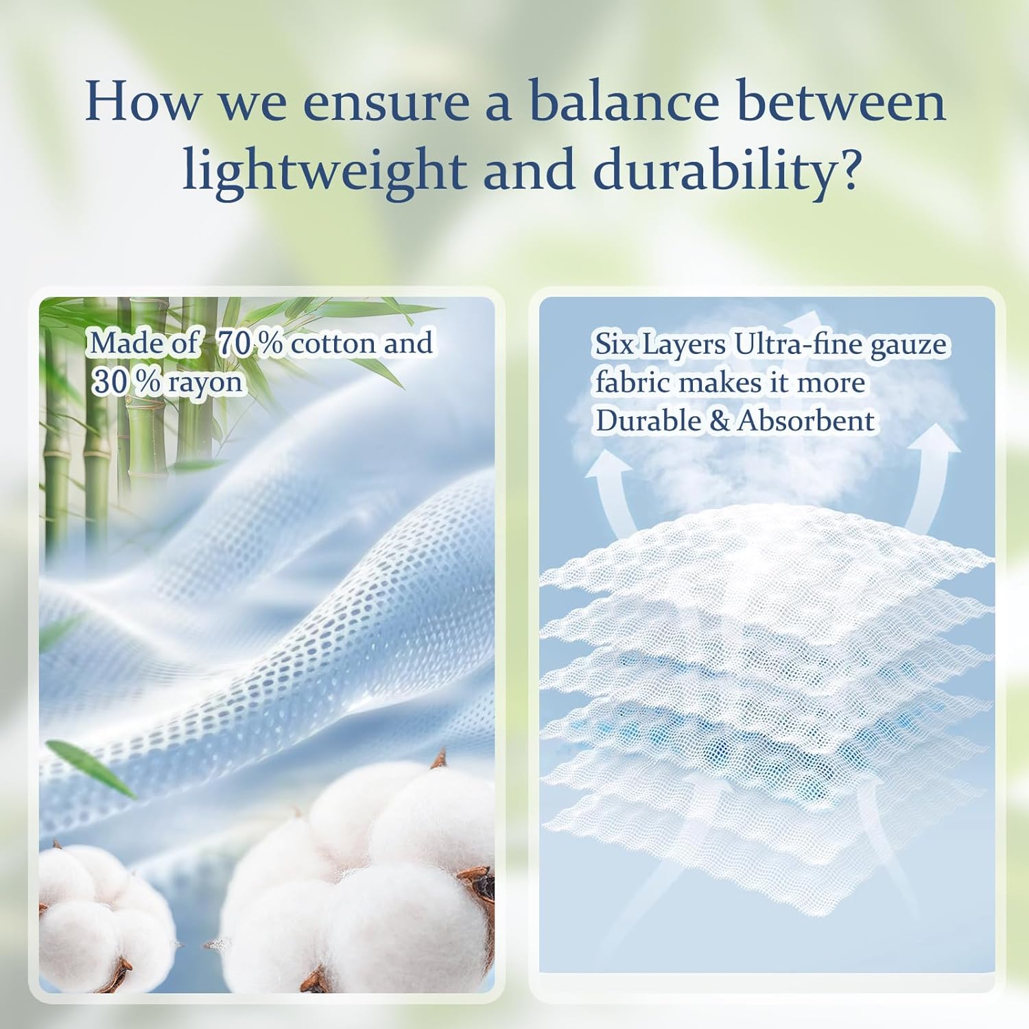 - Softer & Long-Lasting: Our muslin baby blanket is crafted with a blend of 70% cotton and 30% rayon which is softer, lighter,durability and skin-friendly than other organic cotton. Its six layers yarn textile process providing enhanced wear resistance and sweat absorption