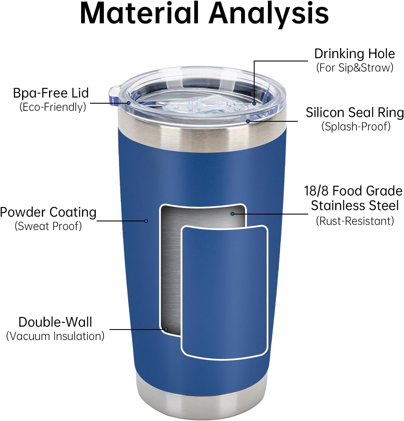 - 【Temperature Retention】: The 20oz Bulk Tumbler uses dual wall vacuum insulation structure to keep drinks cold for 12 hours or hot for 8 hours, The sweat free design of its outer wall always keeps it dry on your desk top, holding your longlasting cold bevarage like iced water, juice, smootie, fizzy drink and more.