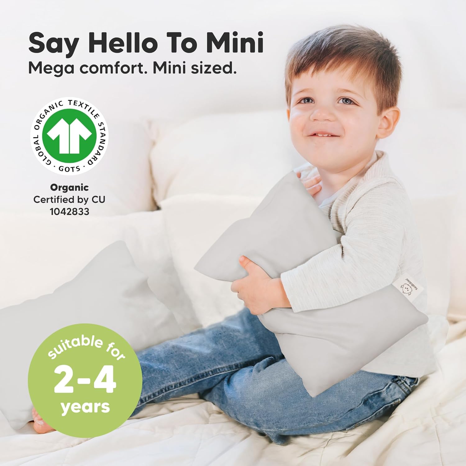 - Safe and Natural – We used OEKO-TEX 100 Standard Certified Cotton, and GOTS Certified CU 1042833, for our Mini Toddler Pillows and Pillowcases. Gentle, breathable, natural – The perfect kids pillow for toddler age 2 to 4.
