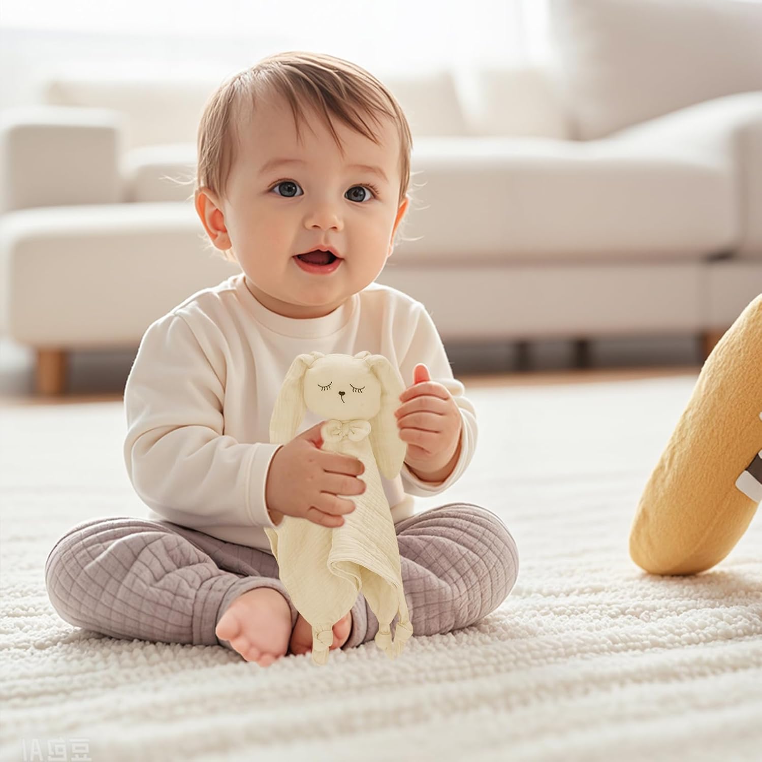 Easter Organic Cotton Muslin Bunny Loveys for Babies Baby Security Blanket Baby Snuggle Toy Newborn Essentials Must Haves(Rabbit-Off White)
