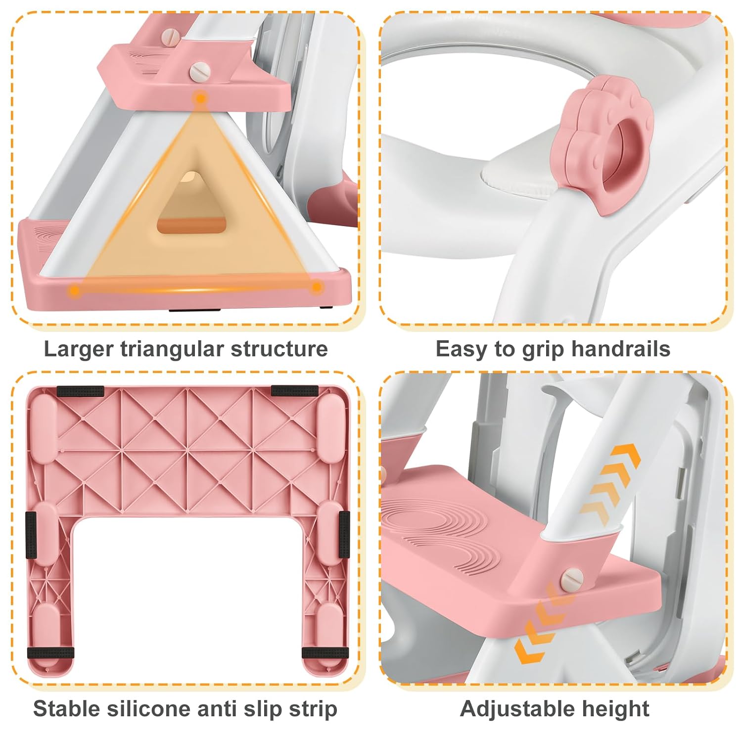 2 In 1 Potty Training Toilet Seat & Toddler Step Stool, Bottom Triangle Stability Toddler Toilet Seat, Adjustable Step & Seat Height Potty Seats (Pink)