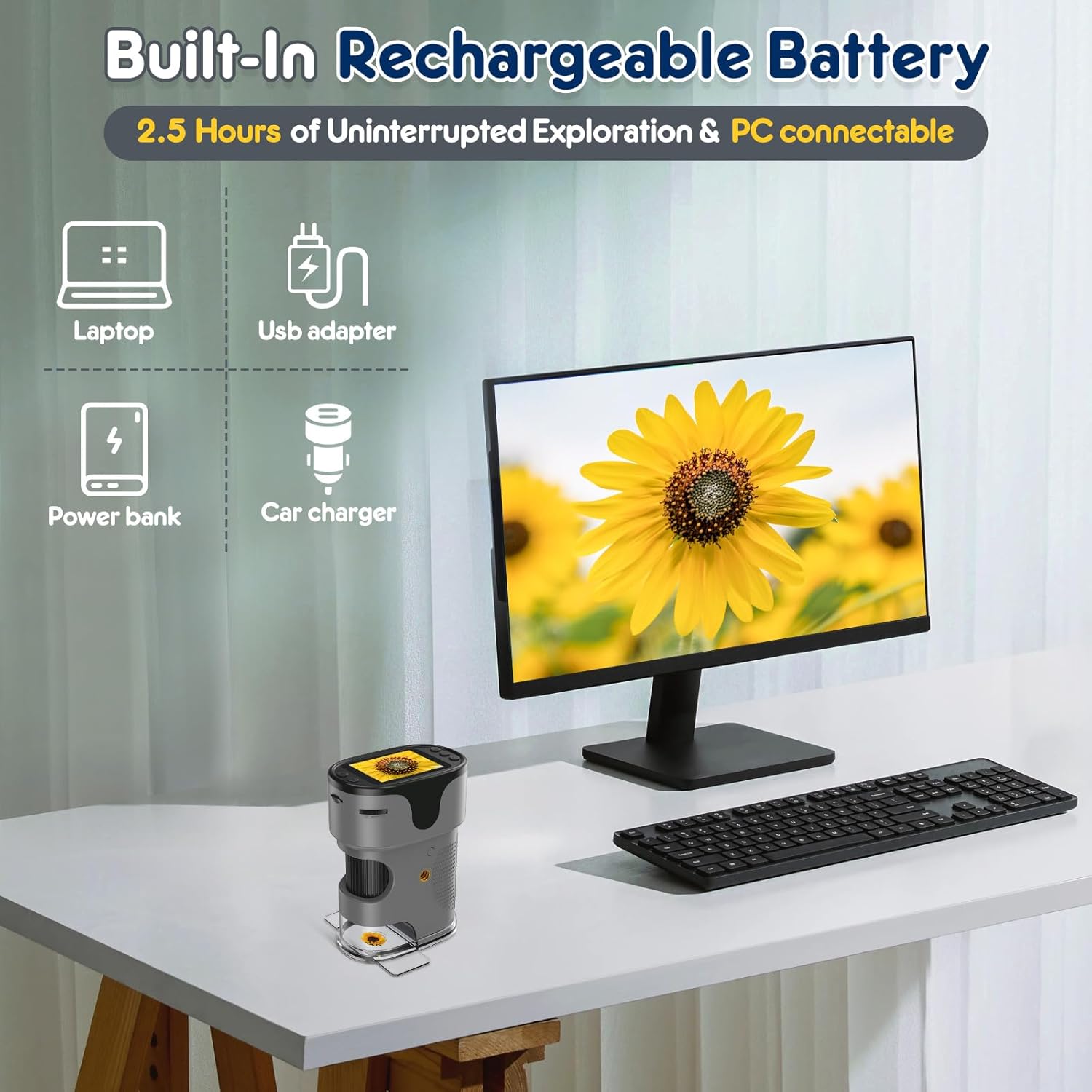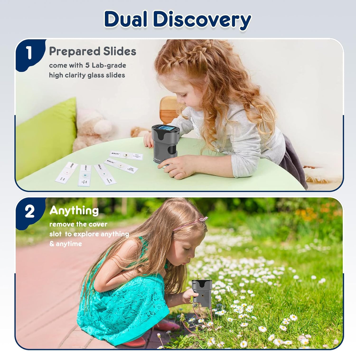 1000X Handheld Microscope for Kids 4K 2.0" Screen Rechargeable Mini Pocket Digital Microscopes w/Slides Kit Portable Edu Gift Age 4-6 8-12 Children Students (Grey)