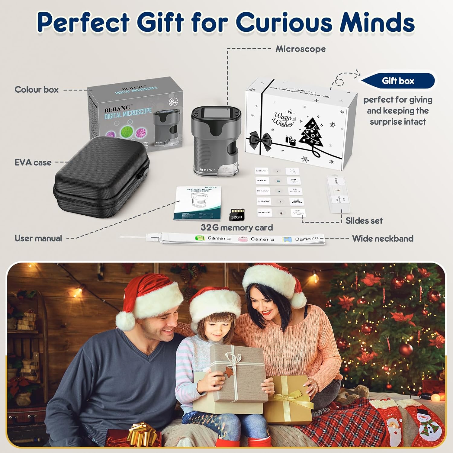- 1000X Magnification: BEBANG microscope has 200x-1000x 5-level zoom range, allowing you to explore a wide range of specimens, from small insects and plants to everyday objects like coins and fabrics.