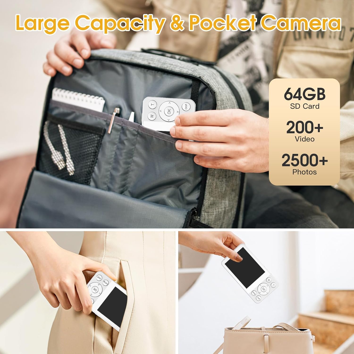 - 【Portable & Versatile Features】The portable camera is slim enough to fit in your pocket. It with rear HD selfie mirror, you can see your beautiful self from the selfie mirror, making your photos more natural and beautiful. And it supports H.264 encoding, MOV format, videos or photos uploaded to mobile phones or computers can be played directly, share beautiful moments anytime, anywhere.
