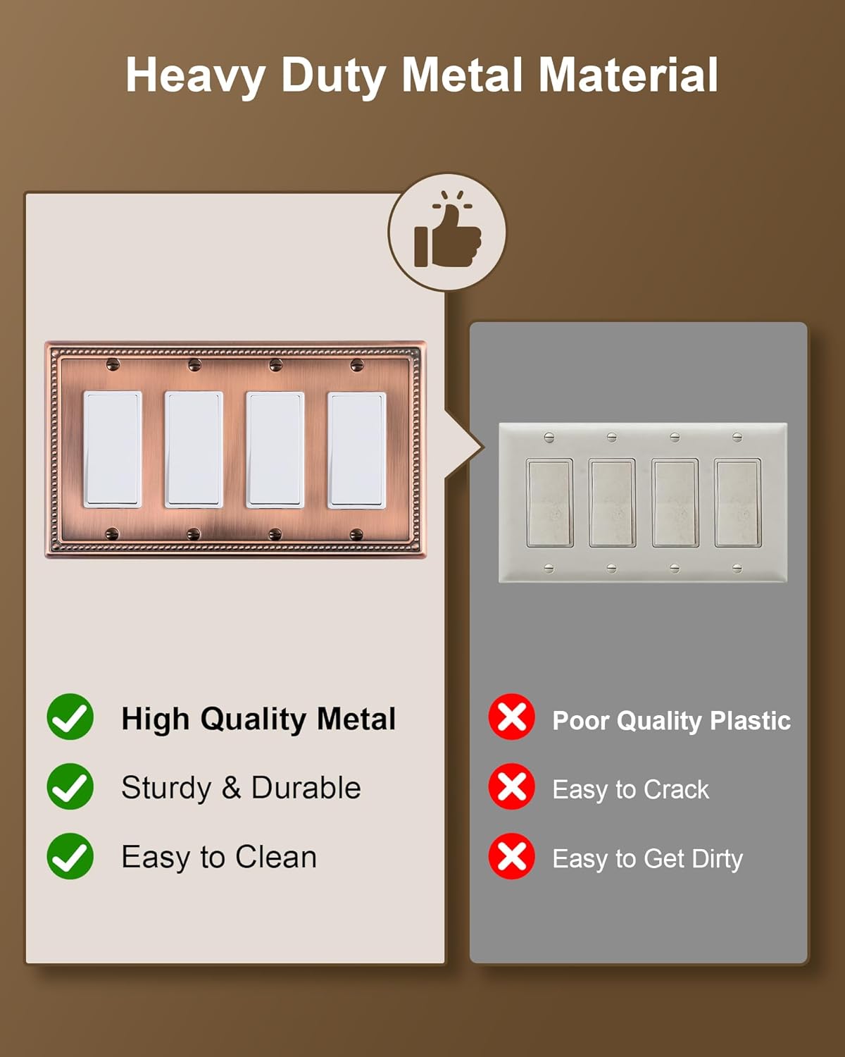 - Wide Application - Versatile and easy to match, These antique copper wall plates are compatible with decorator outlet receptacle, roker switch, dimmer switch, GFCI outlets. Whether your decor is modern, traditional, or contemporary, this plate blends seamlessly. Perfectly applicable to homes, offices, commercial, and various building types.