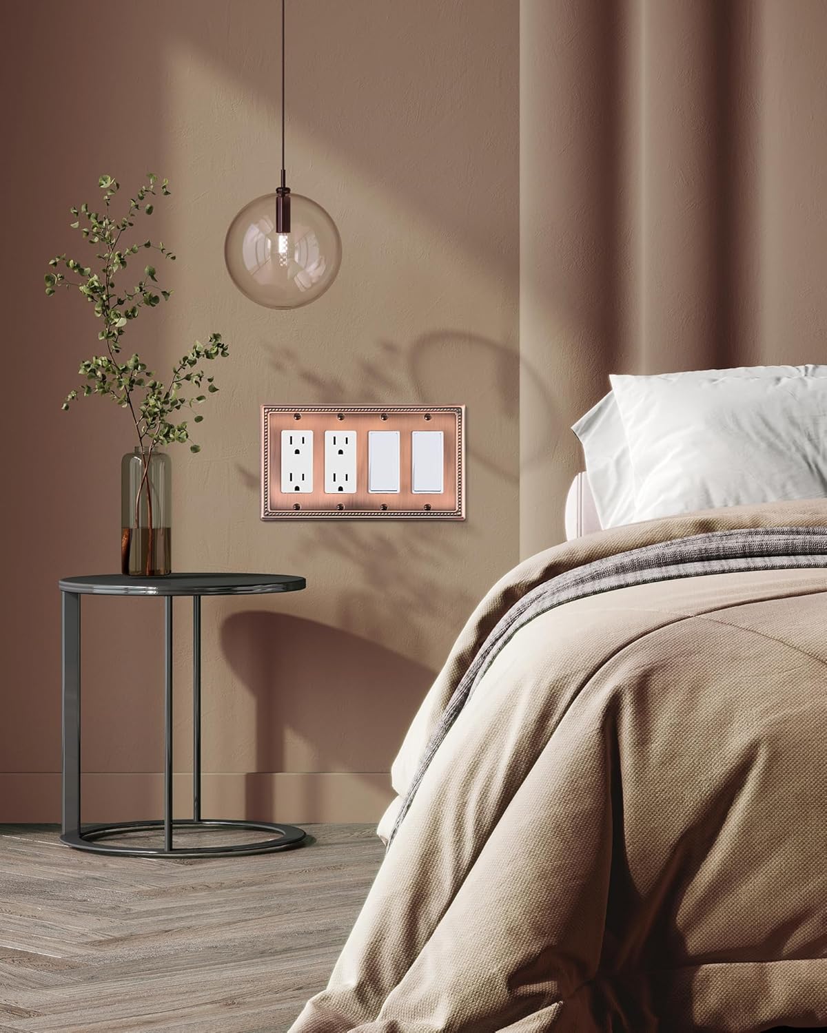 2-Pack Quad Decorator Outlet Cover Plate, Antique Copper Pearls Decorative Switch Plates and Outlet Covers, Metal Wall Plates for Electrical Outlets, Receptacle, GFCI Outlet, Dimmer Switch