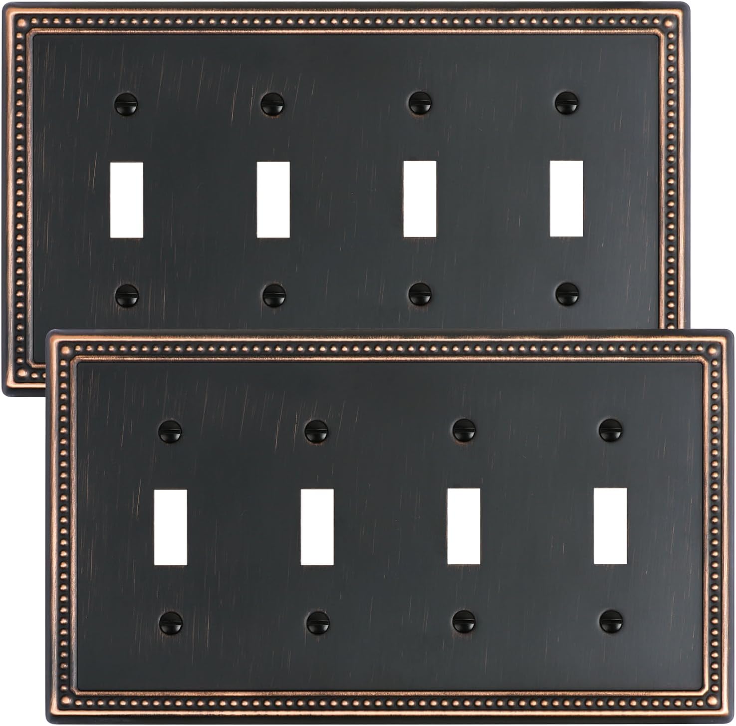 2-Pack Quad Toggle Light Switch Cover Plate, 4 Gang Metal Switch Plate Covers, Aged Bronze Pearls Decorative Wall Plate, Corrosion Resistant