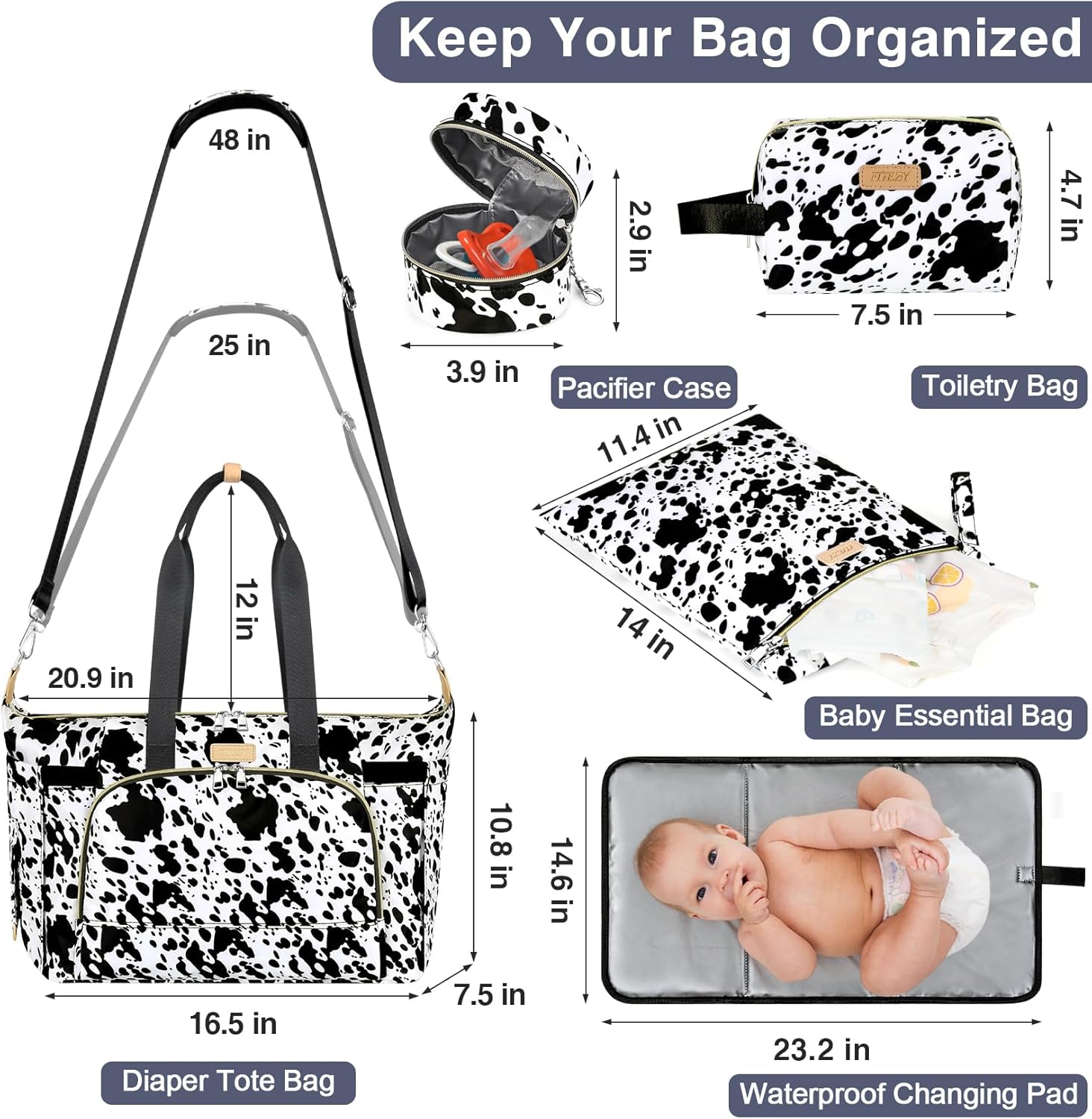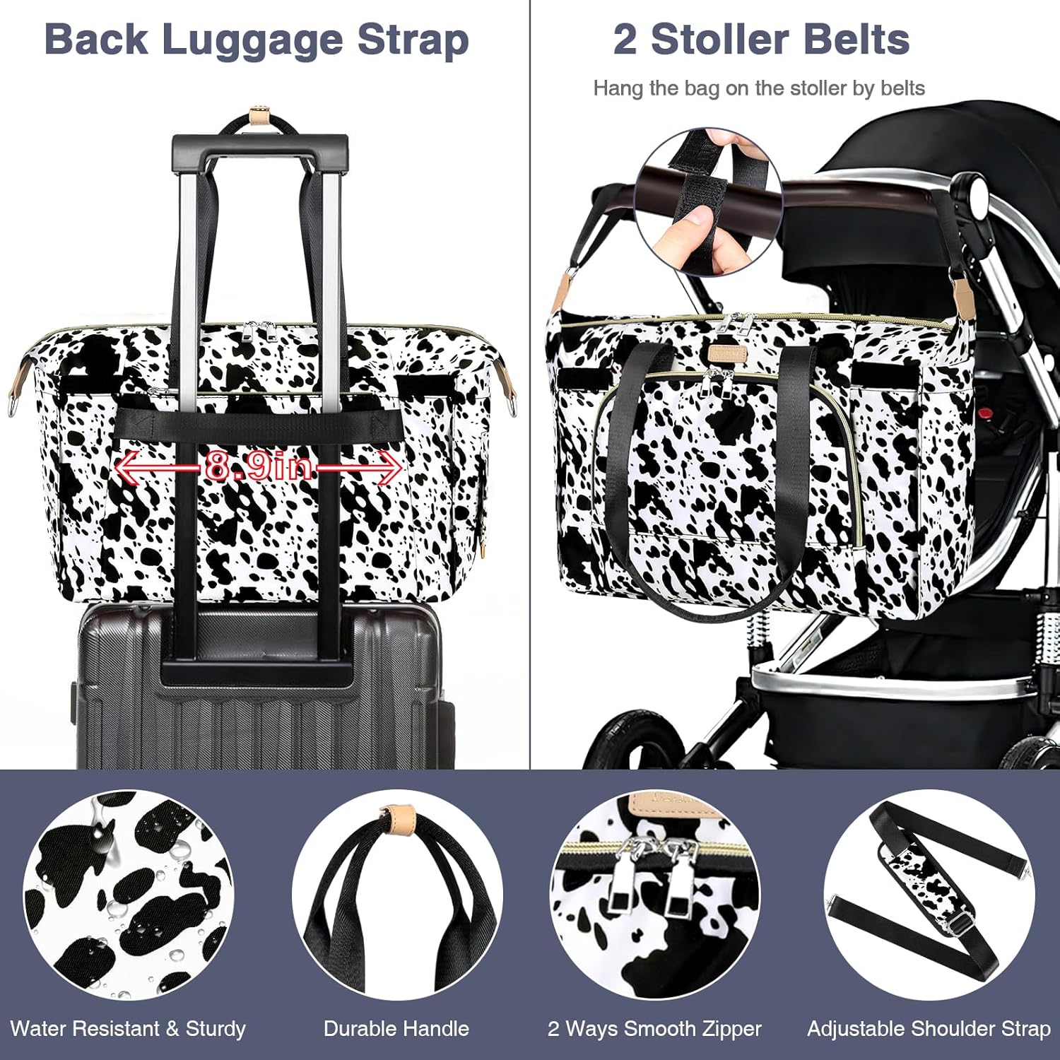 - Convenient Carry on Diaper Bag: Our large diaper bag equipped with an adjustable shoulder strap with padded, easily converts from a shoulder bag to a crossbody bag. This diaper tote is equipped with 2 stroller straps, you can hang the mommy bag on the stroller and free your hands. And a handy luggage sleeve at the back could slide over the carry-on luggage handle easily and fits in the under seat space in flight. The tote bag is an excellent option for parents while traveling with their baby.