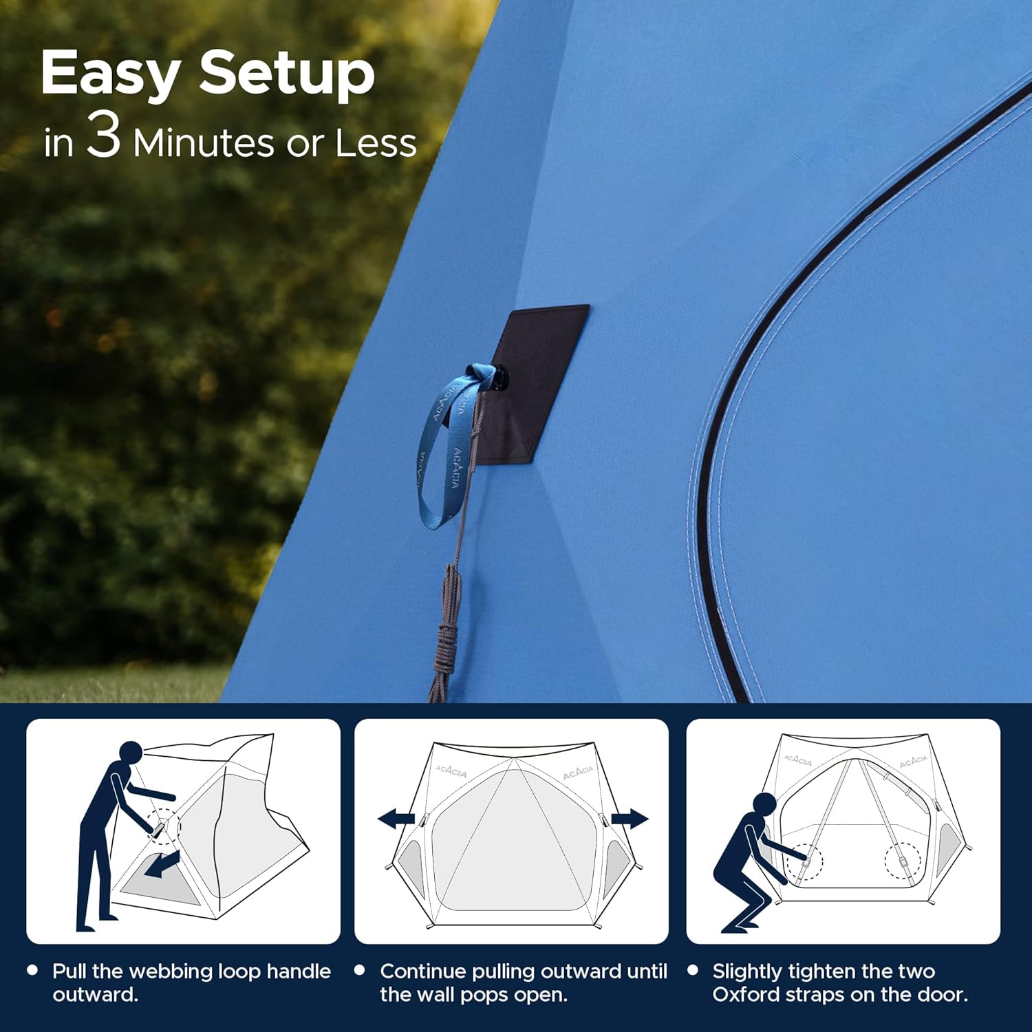 - POP UP DESIGN – READY IN SECONDS: No tools, no hassle—just unfold, push the hubs, and the pop up beach tent is set up in seconds. Whether you're heading to the beach, setting up camp, or relaxing in the backyard, this instant shelter lets you spend less time assembling and more time enjoying the outdoors with family and friends